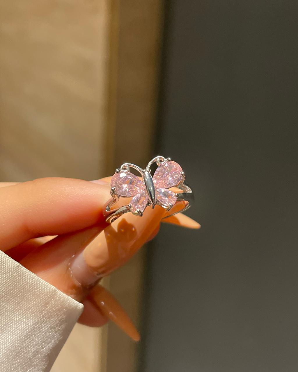 Nature lover ring, soft girl aesthetic, gift for her, purple jewelery, pink Butterfly ring, pink ring.