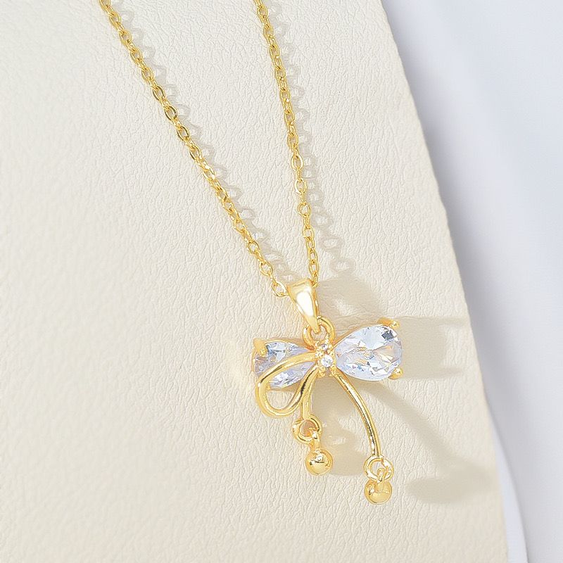 stainless steel necklace , golden necklace, anti tarnish necklace, anti tarnish jewellery, bow necklace, bow jewelery.