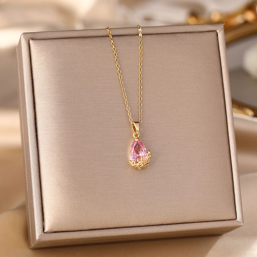 stainless steel necklace , golden necklace, anti tarnish necklace, anti tarnish jewellery, pink necklace, flower necklace, floral necklace.