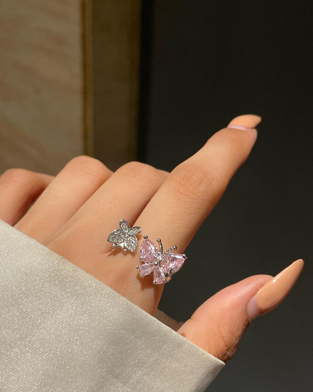 Nature lover ring, soft girl aesthetic, gift for her, butterfly jewelery, Butterfly ring, pink butterfly ring.