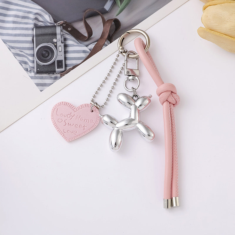 Trending accessories, pink bag charm, dog bag charm, puppy bag charm, silver bag charm, heart bag charm
