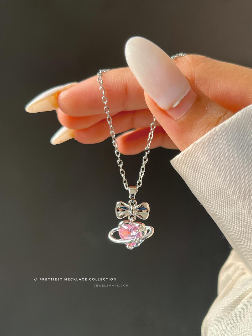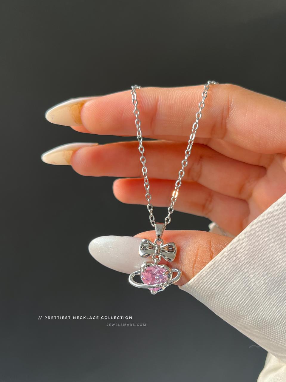 Minimal necklace, stainless steel necklace , silver necklace, anti tarnish necklace, anti tarnish, bow necklace, heart necklace