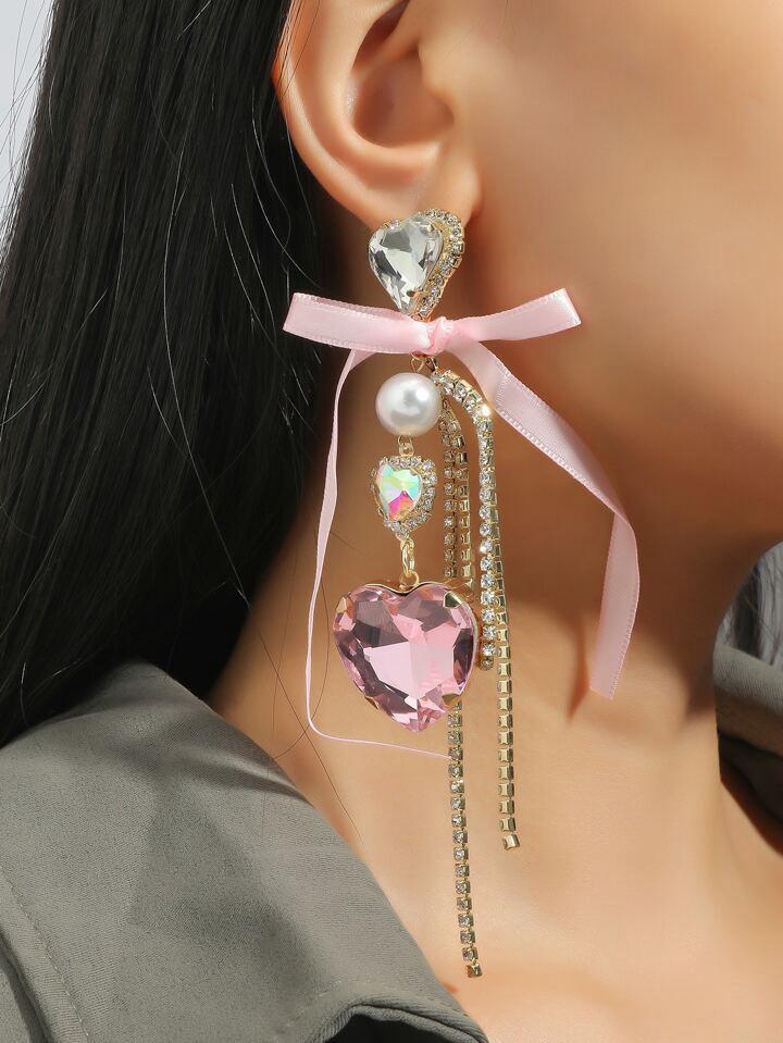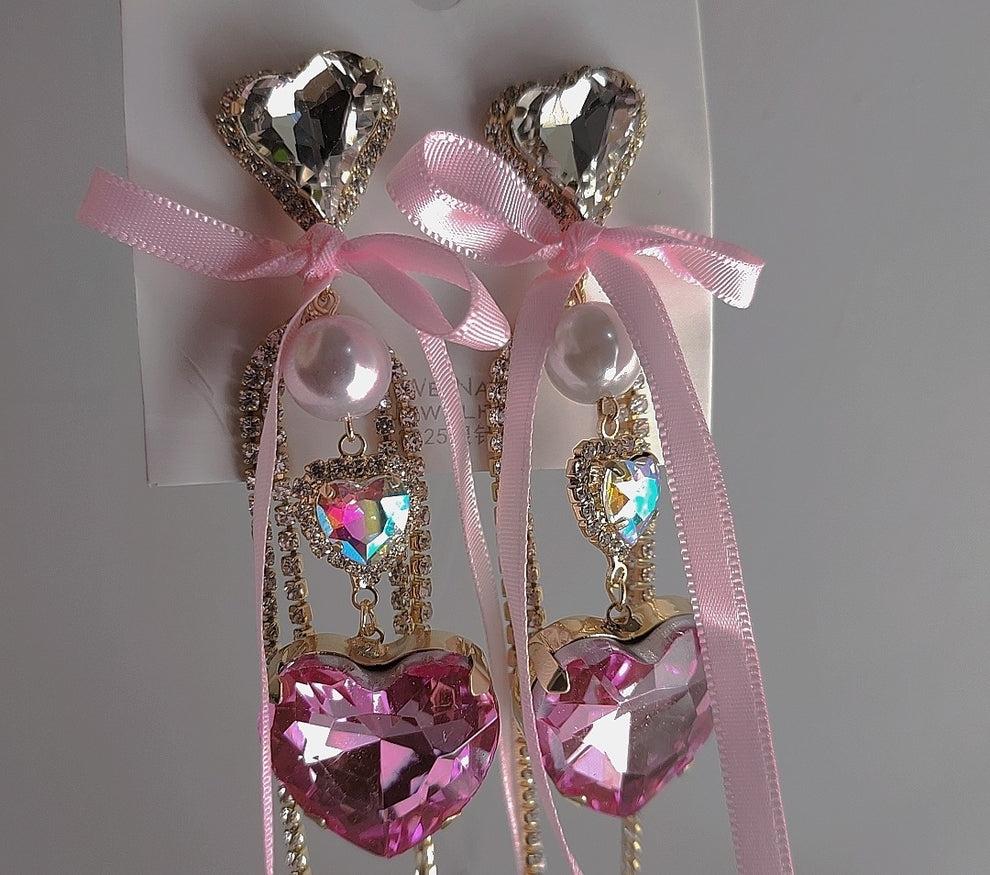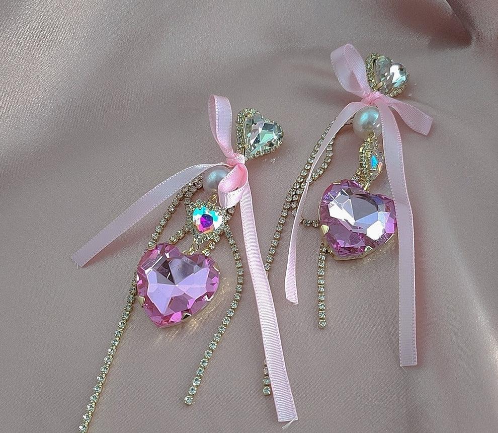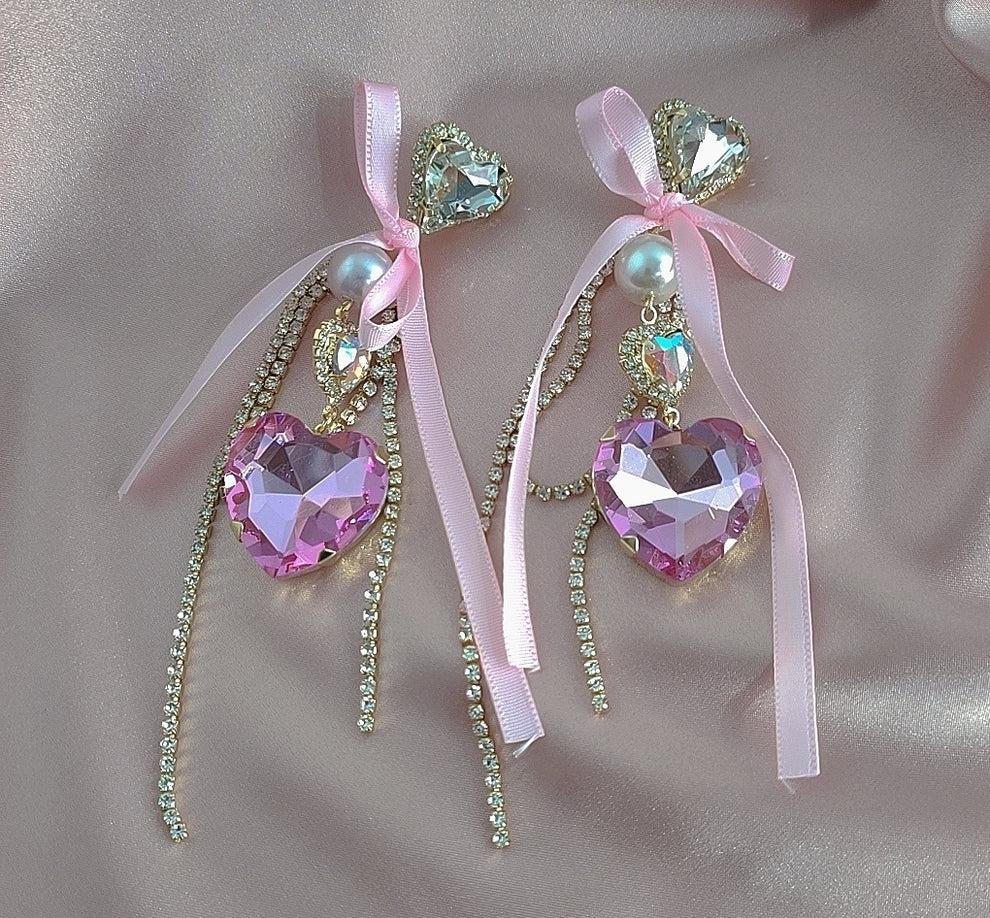 Purple earrings, party earrings, Korean earrings collection , pink bow earrings, girly girl earrings, glam earrings collection, dreamy earrings, pink heart earrings, party earring, pearl earrings birthday jewellery, dreamy jewellery, handmade earrings, Princess earrings.