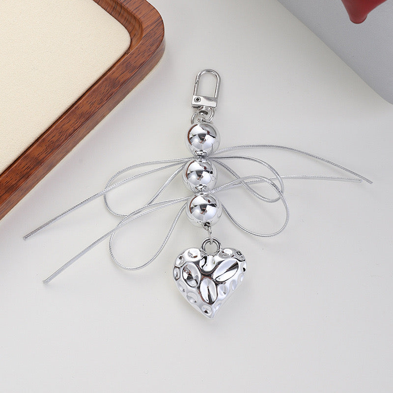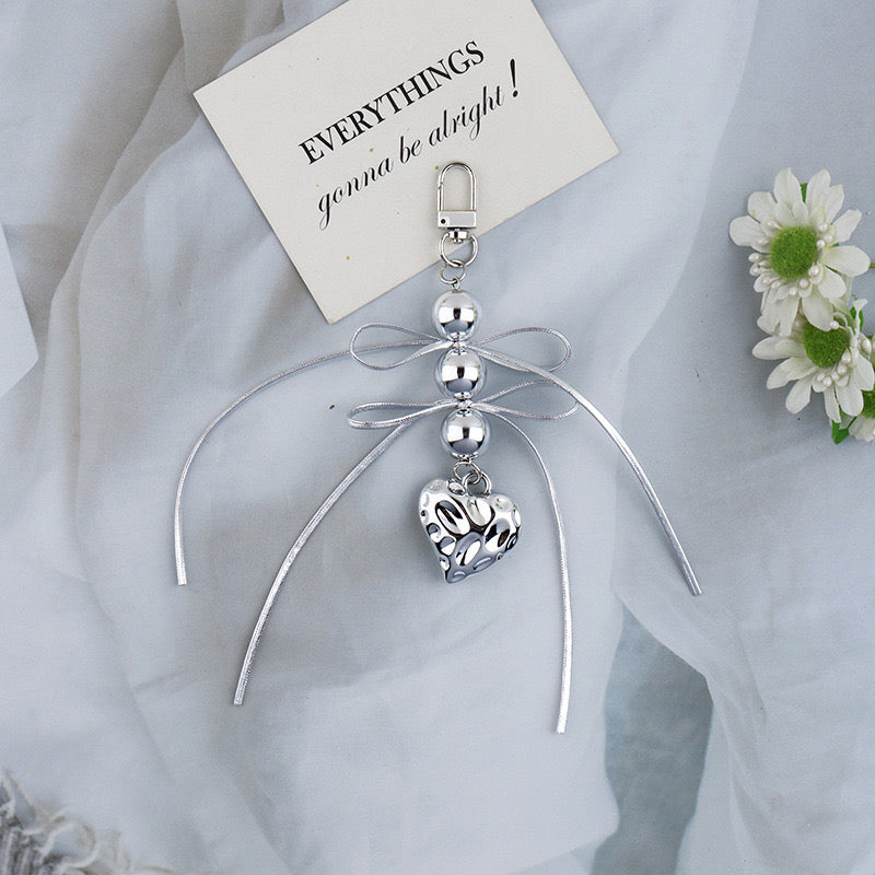 Trending accessories, bow bag charm, heart bag charm, white bag charm, silver bag charm, bag accessories, key chains, Bow accessories