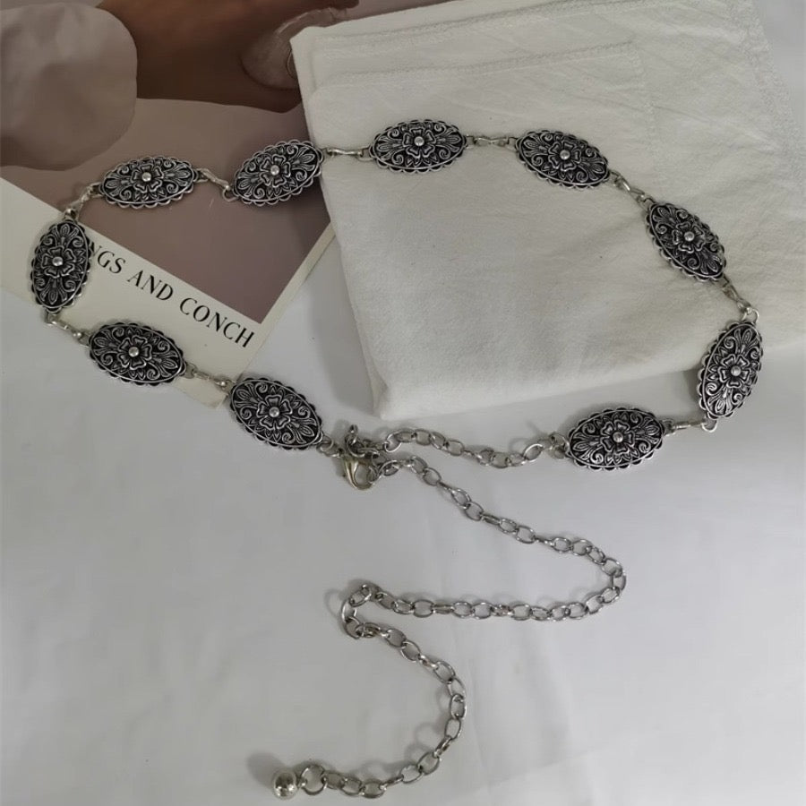 Waist chains, flower waist chain, silver waist chain, vintage waist chain, statement waist chain, waist belt, viral accessories, Pinteresty jewellery, statement jewellery