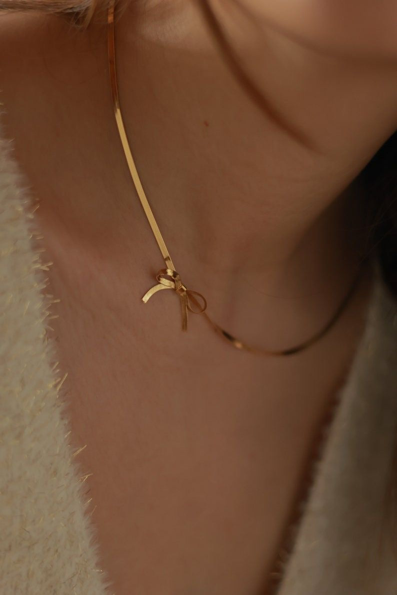 Anti tarnish nnecklace, premium quality necklace, gifts for her, gold plated jewellery, snake jewellery, trendy jewellery, stainless steel jewellery , statement jewellery, bow jewellery, bow necklace, bow jewellery.