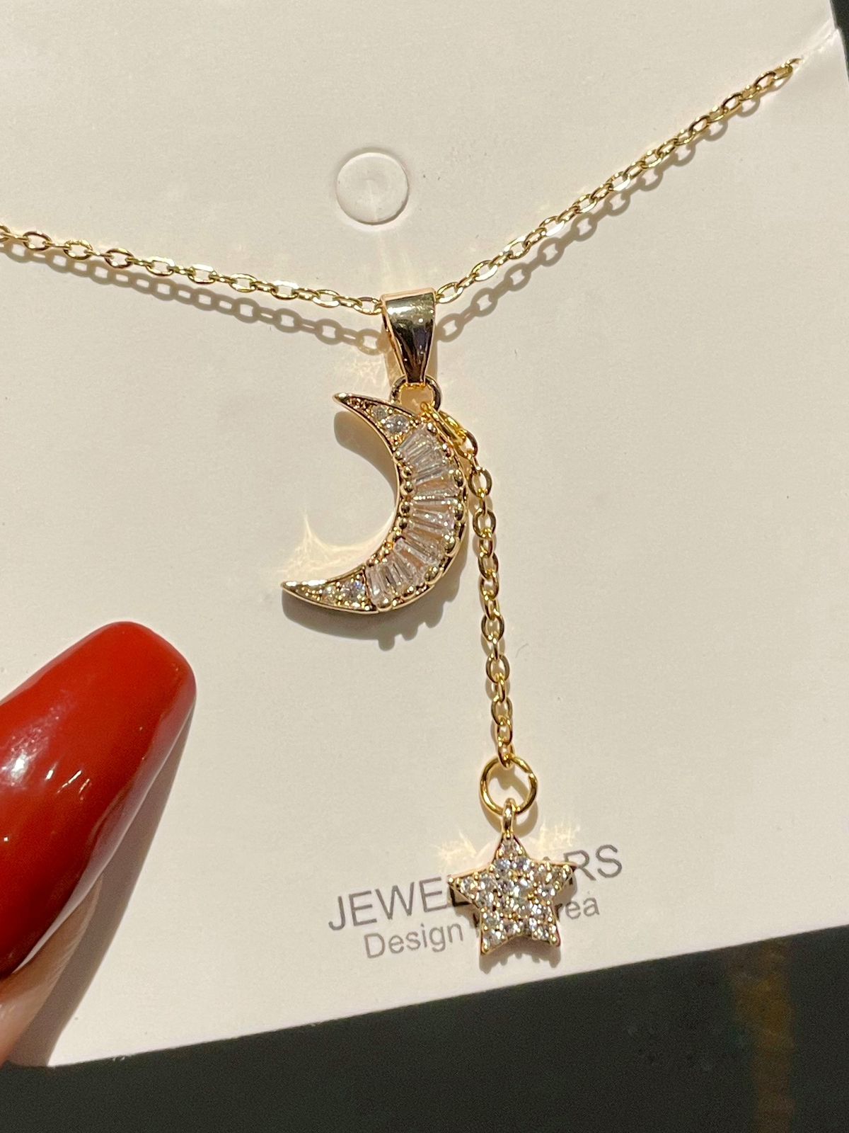 Moon Star Drop Necklace (stainless steel)