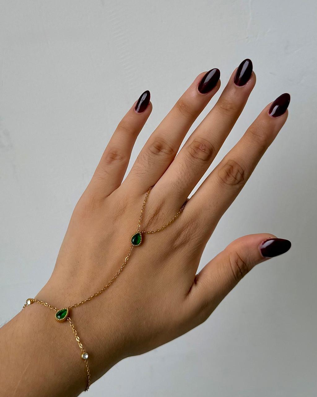 Gold hand chain, green hand chain, anti tarnish hand chain, hand accessories, gold plated accessories