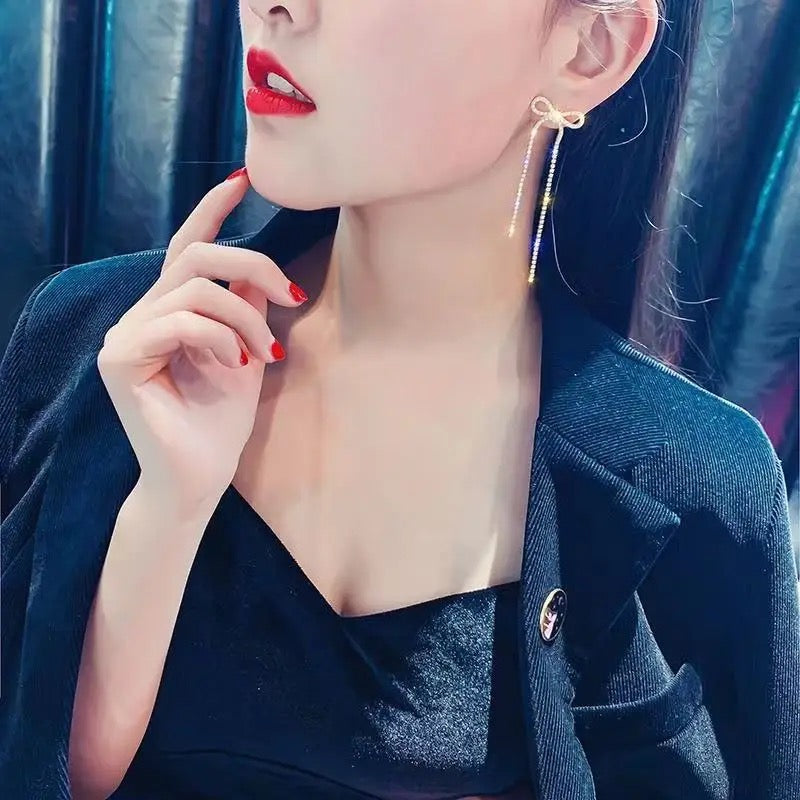 Party earrings, bow earrings, cute jewellery , campus collection, golden earrings, soft girl aesthetic, magical earrings, korean earrings , party bow earrings.