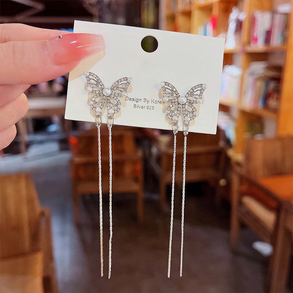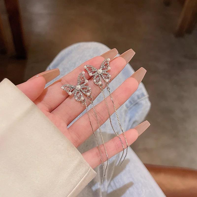Korean earrings, cute earrings, cute jewellery , soft girl aesthetic, butterfly earrings, campus collection, pearl earrings, long earrings, GenZ  earrings, party earrings