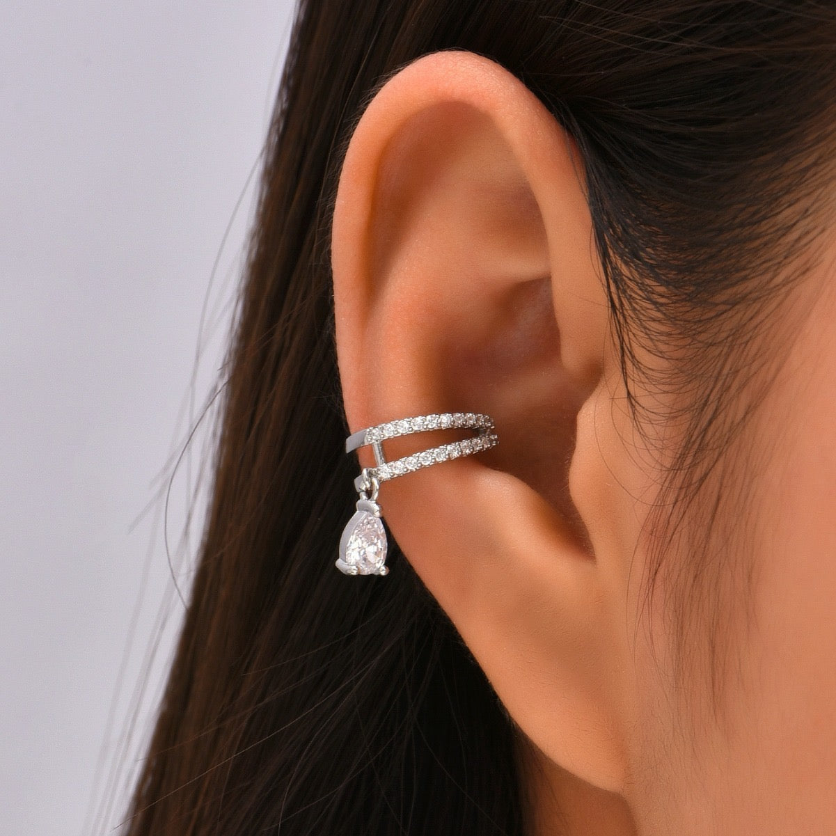 Silver ear-cuff, dangling ear-cuff, party ear-cuff, rhinestone ear-cuff, stainless steel ear-cuff, silver jewellery, Pinterest inspired jewellery