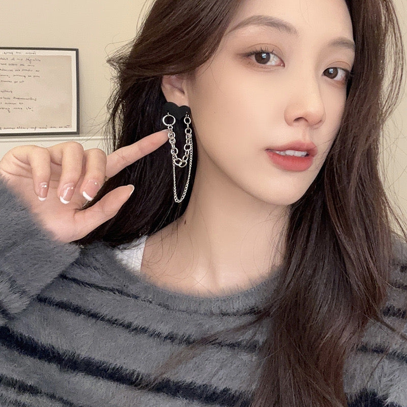 Silver earrings, Heart earrings, trendy earrings, black earrings, grunge earrings, grunge aesthetic, Pinterest inspired accessories, Pinteresty jewellery, silver jewellery