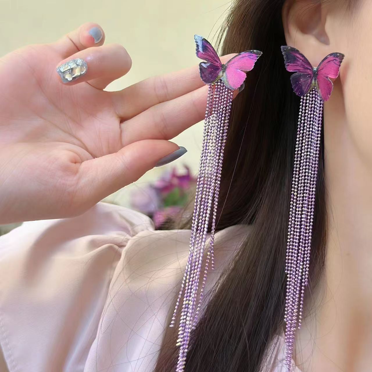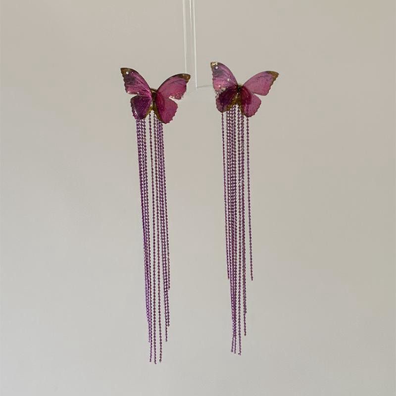 Purple earrings, party earrings, Korean earrings collection , girly girl earrings, glam earrings collection, dreamy earrings, purple butterfly earrings, party earring ms, birthday jewellery, dreamy jewellery, handmade earrings, Princess earrings.