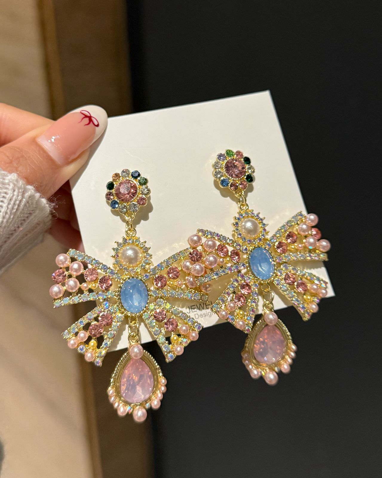 Pearl earrings, party earrings, Korean earrings collection , blue earrings, girly girl earrings, glam earrings collection, dreamy earrings, pink bow earrings, pearl earrings, party earring, birthday jewellery, dreamy jewellery, handmade earrings, Princess earrings.