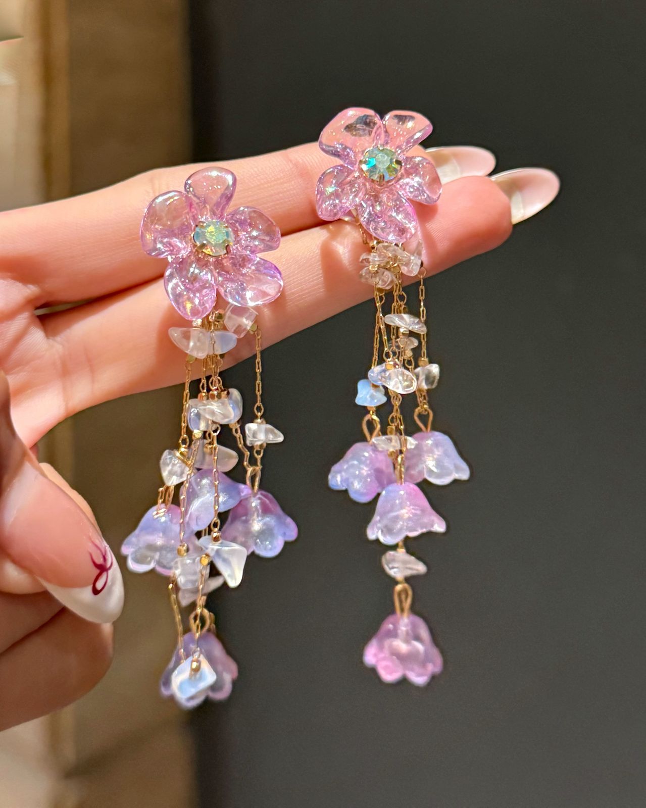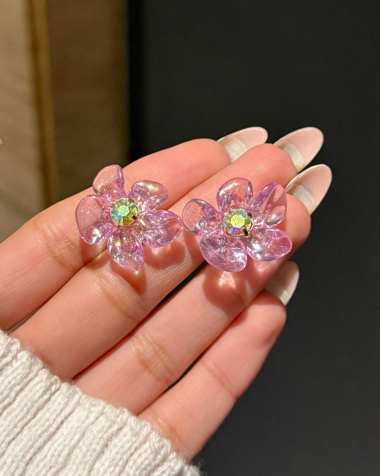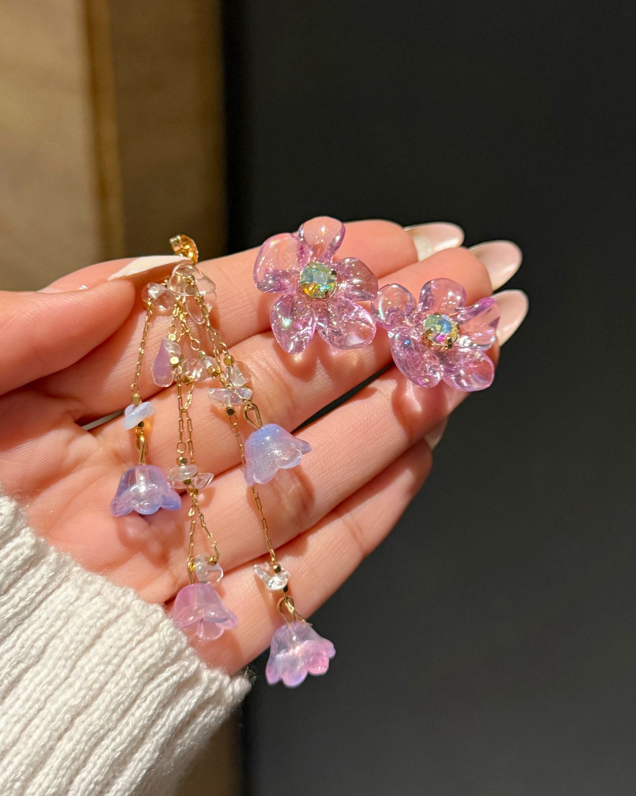 Flower earrings, party earrings, Korean earrings collection , purple flower earrings, floral earrings, wedding earrings, girly girl earrings, glam earrings collection, dreamy earrings, purple earrings, birthday jewellery, dreamy jewellery, handmade earrings, Princess earrings.