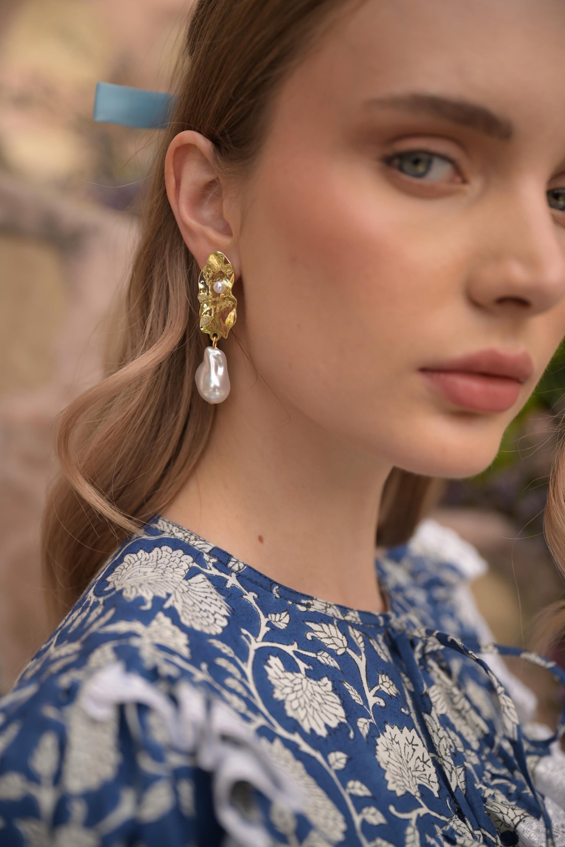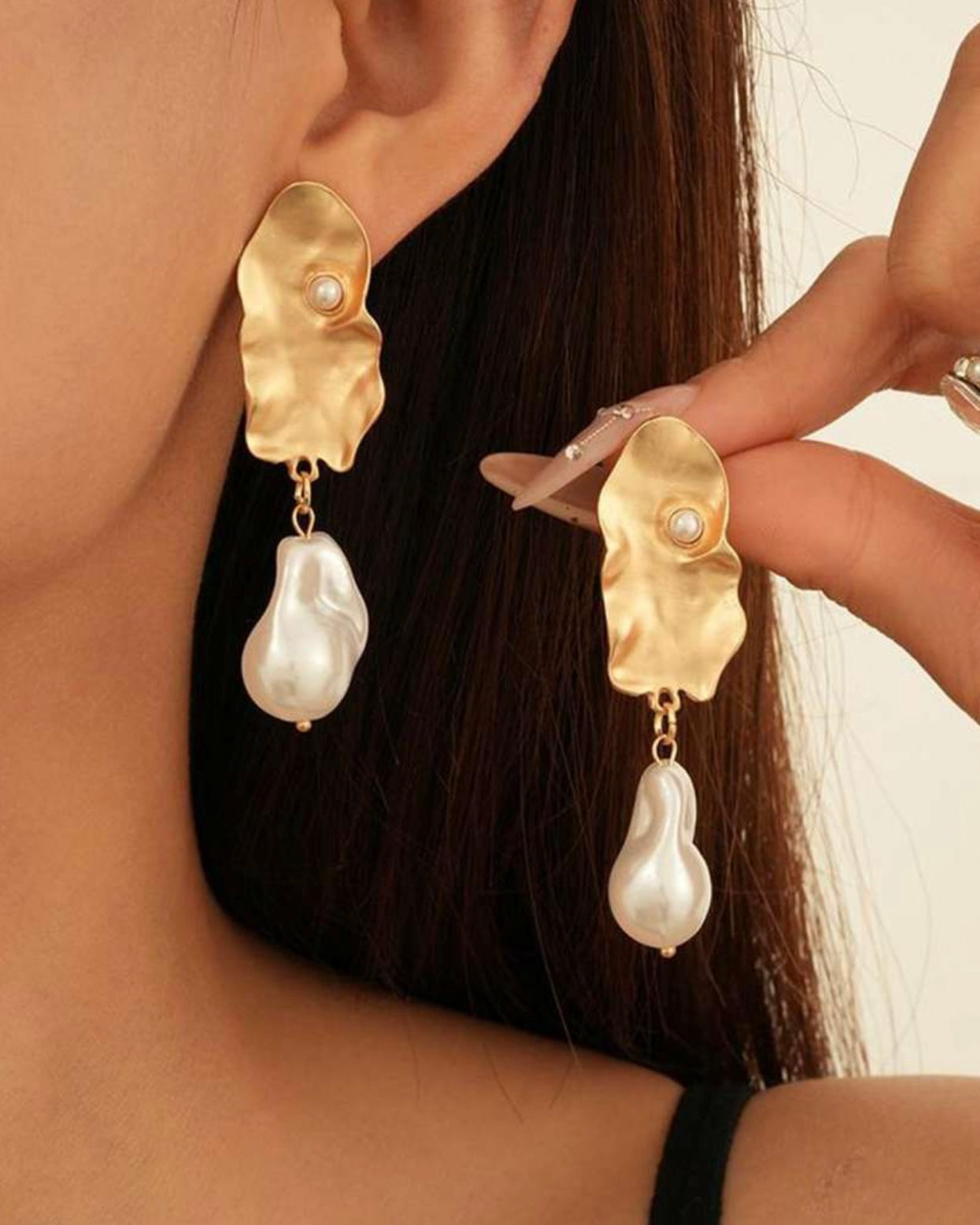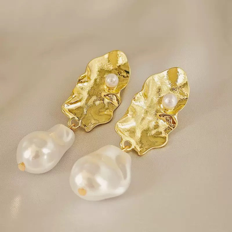 Hammered Pearly Statement Earrings