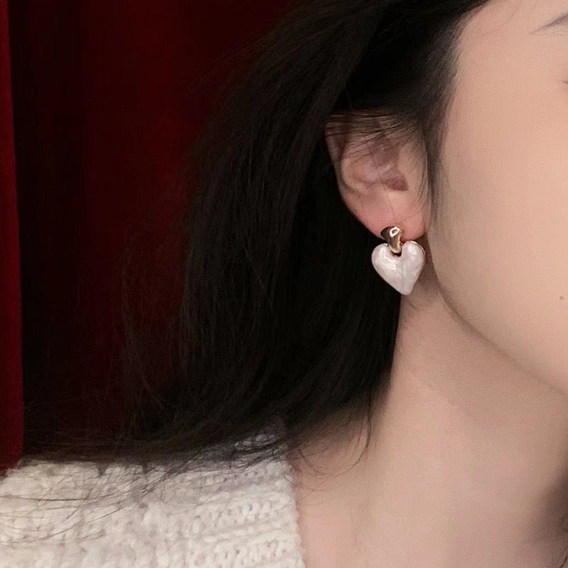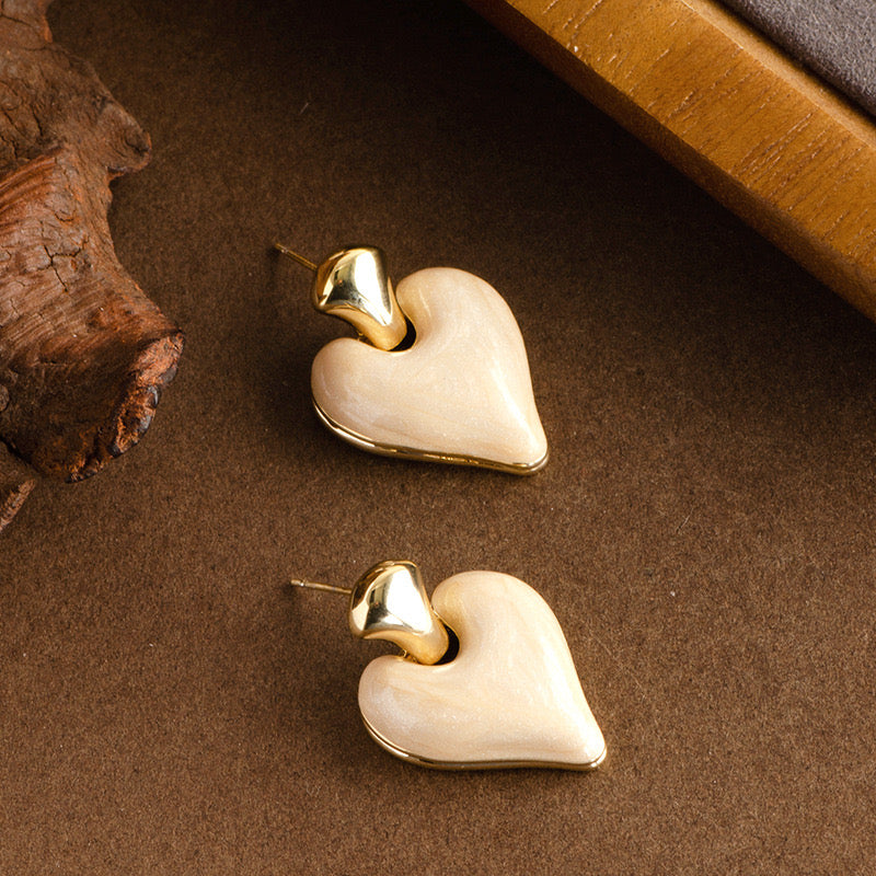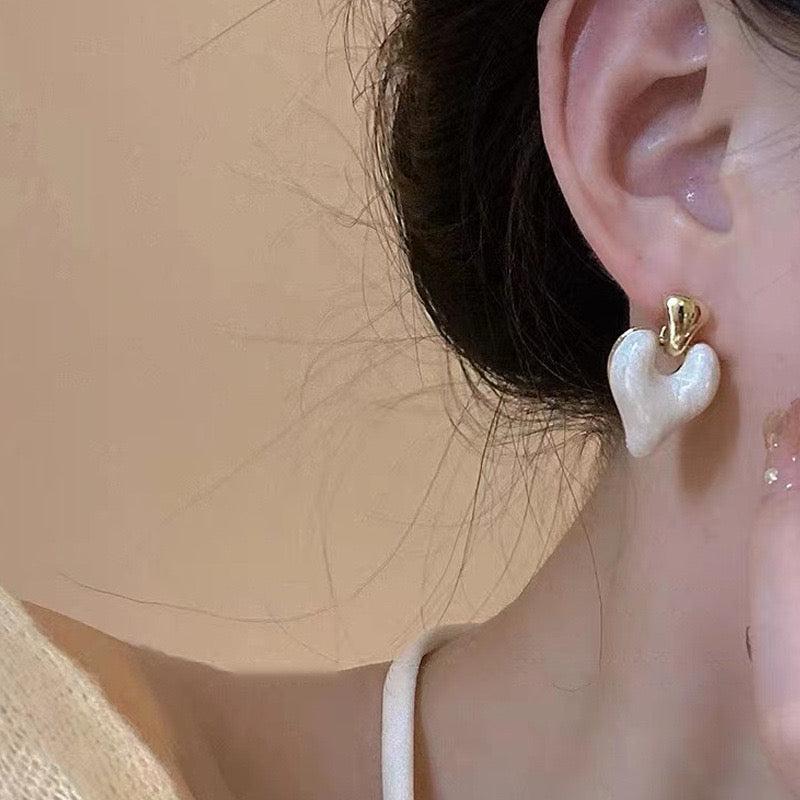 Heart earrings, white earrings, gold earrings, Pinterest inspired accessories, Pinteresty jewellery, gold jewellery