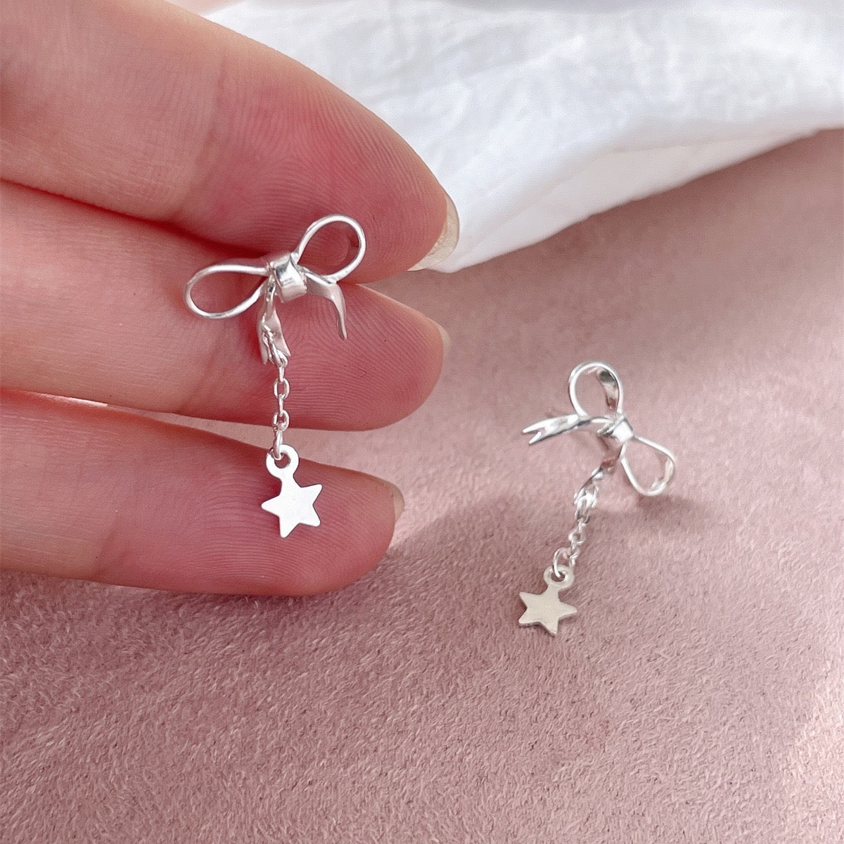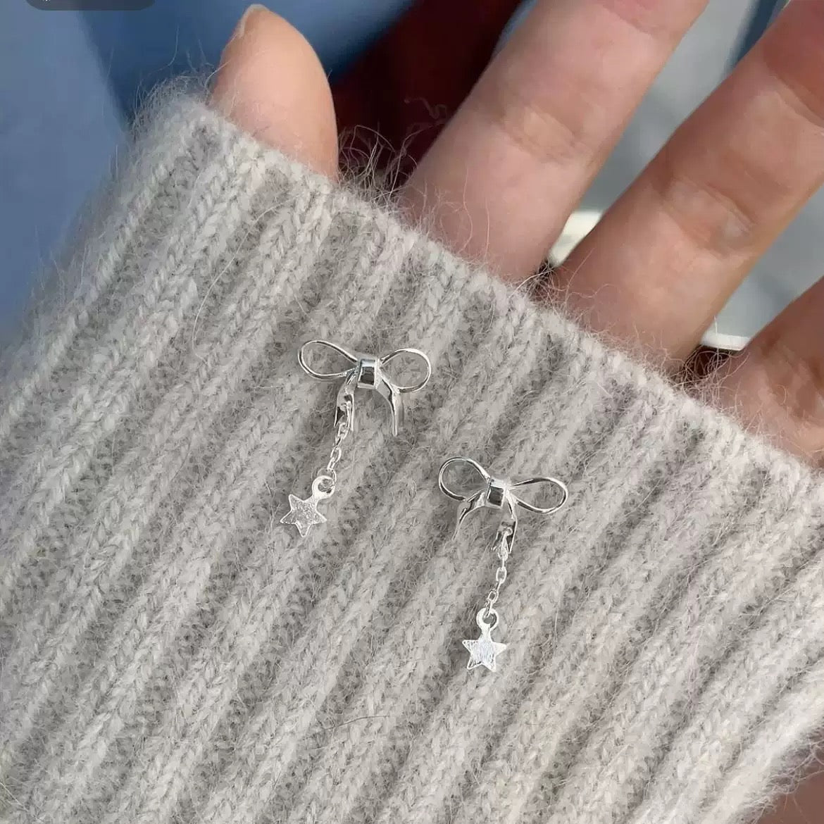 Bow earrings, star earrings, dangling earrings, silver earrings, grunge earrings, grunge accessories, gifts for girls