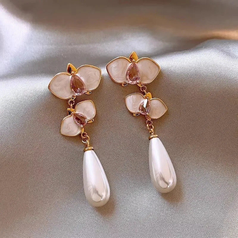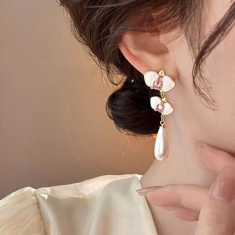 Gold earrings, pink earrings, pearl earrings, dreamy, drop earrings, Pinterest inspired accessories, Pinteresty jewellery, gold jewellery