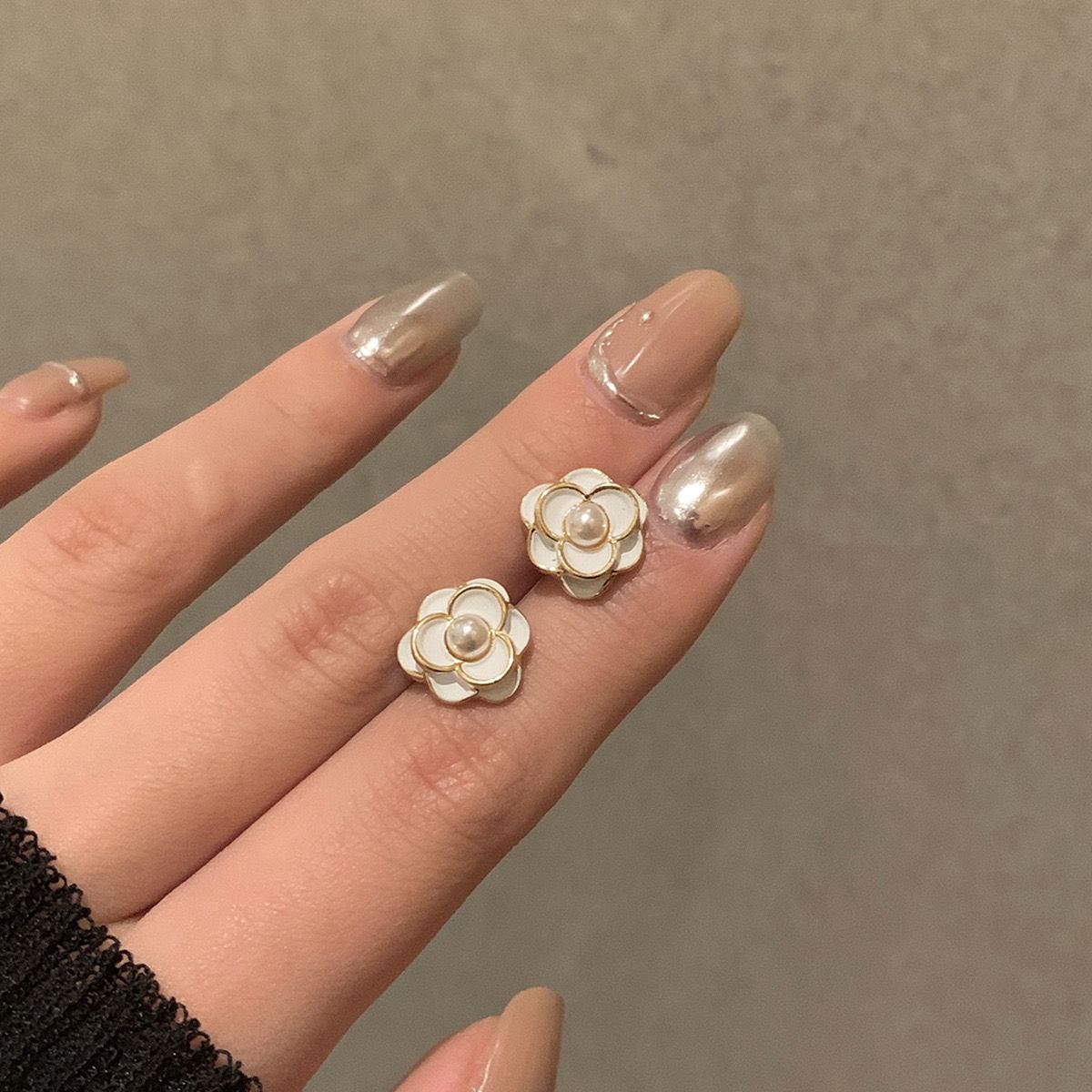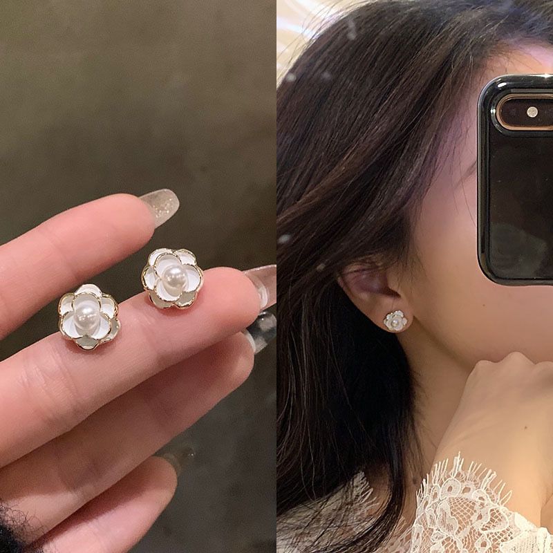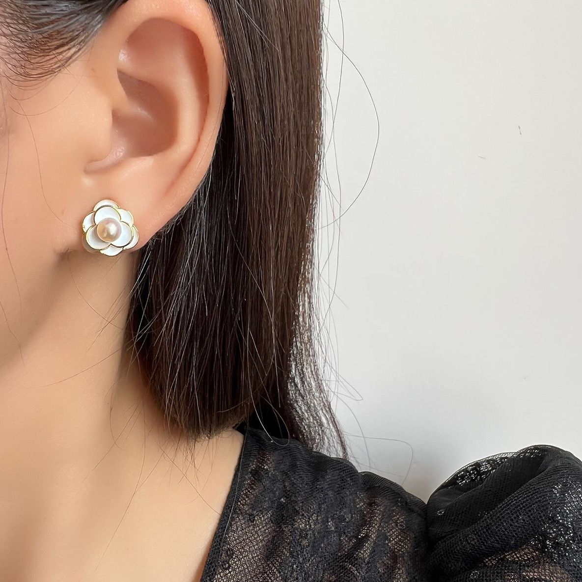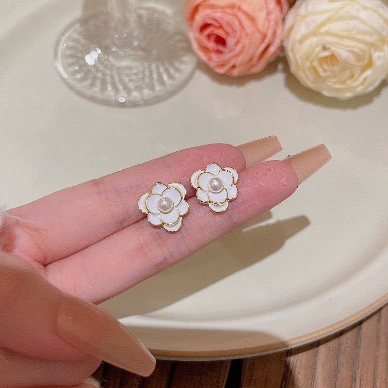 Korean earrings , soft girl aesthetic, campus collection, pearl earrings, small earrings, white flower earrings, floral earrings.