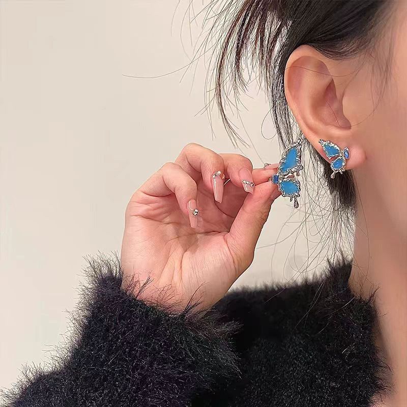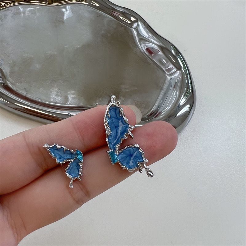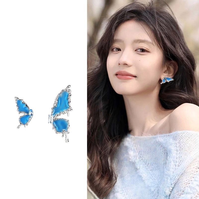 Korean earrings , soft girl aesthetic, campus collection, blue earrings, butterfly earrings.