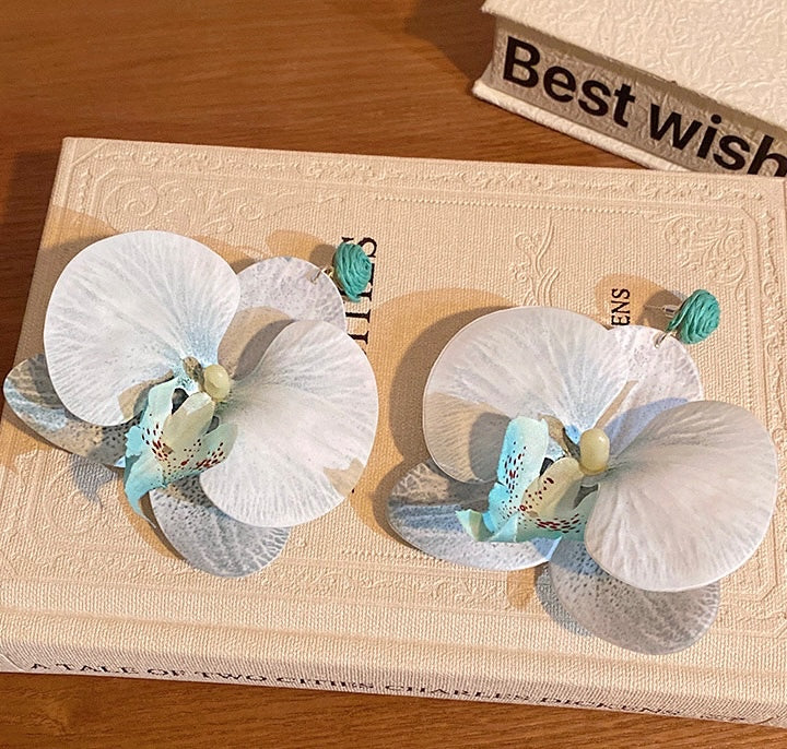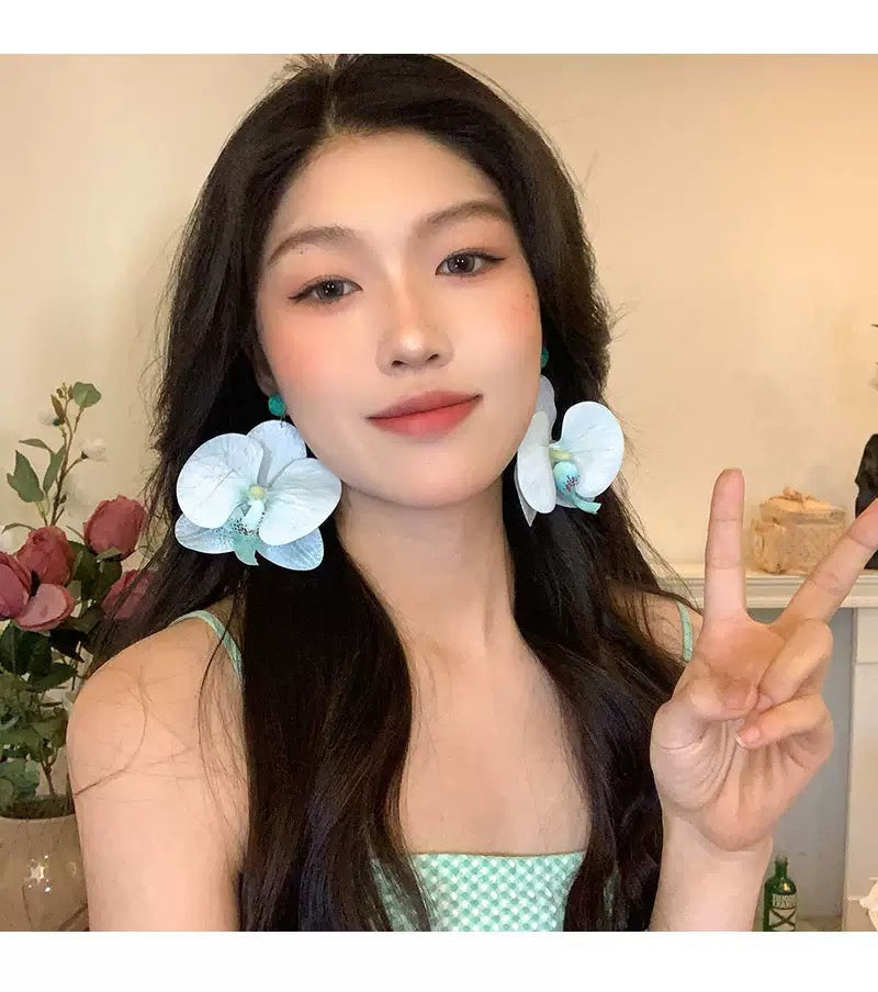 Beach earrings, flower earrings, blue earrings, orchid earrings, Pinteresty accessories, gifts for girls