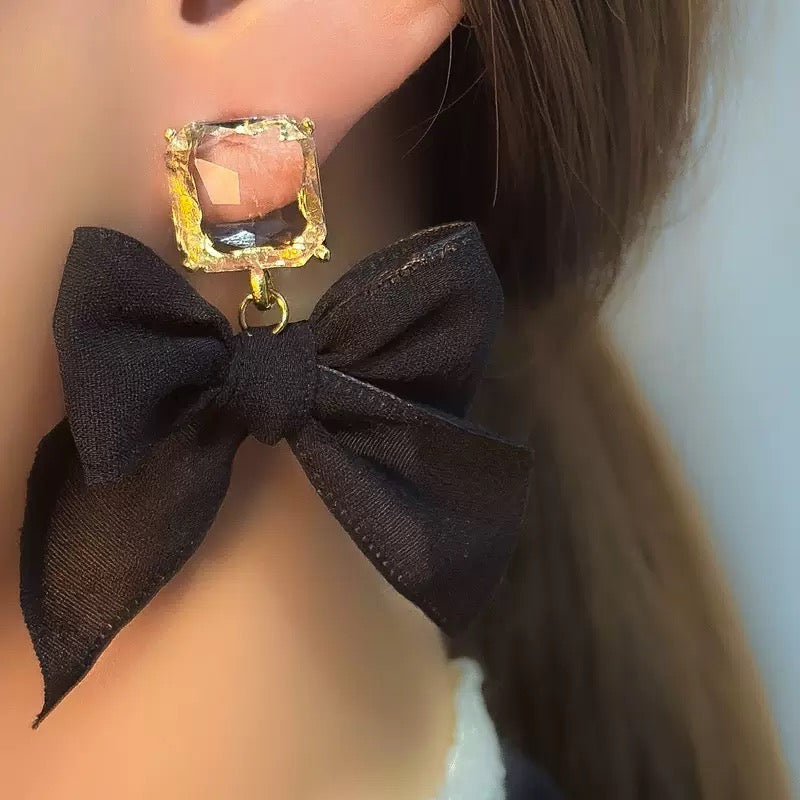 Bow earrings, black earrings, gold earrings, clear earrings, pinteresty accessories, gifts for girls
