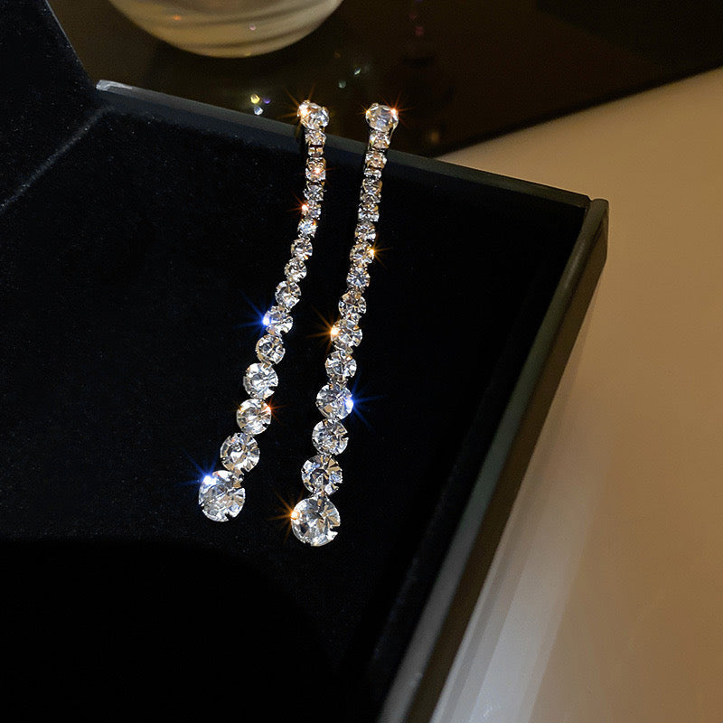 Rhinestone earrings, white earrings, silver earrings, party earrings, dangling earrings, pinteresty accessories, gifts for girls