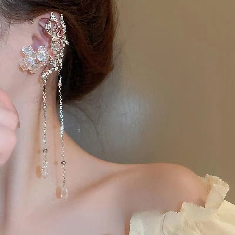 White earcuff, party earcuff, silver earcuff, flower earcuff, dreamy big, dreamy earcuff, gifts for girls, fairy core accessories