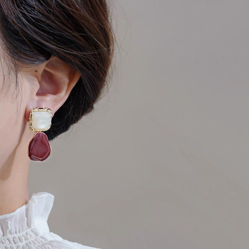 Gold earrings, pearl earrings, party earrings, red earrings, maroon earrings, Pinteresty accessories, gifts for girls