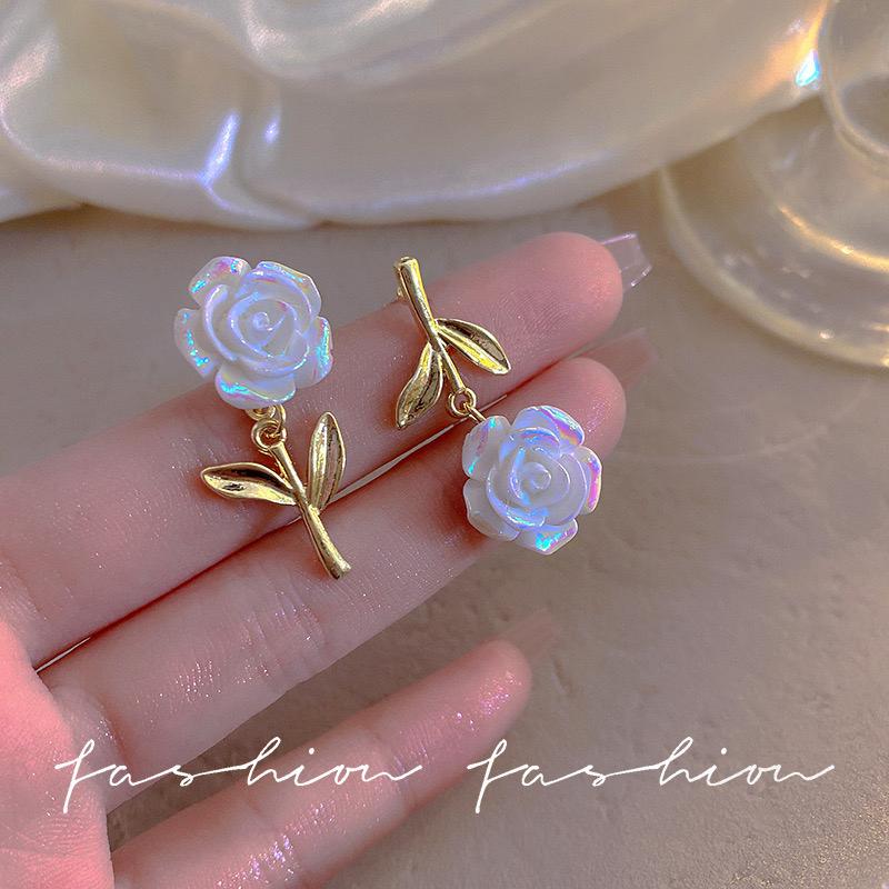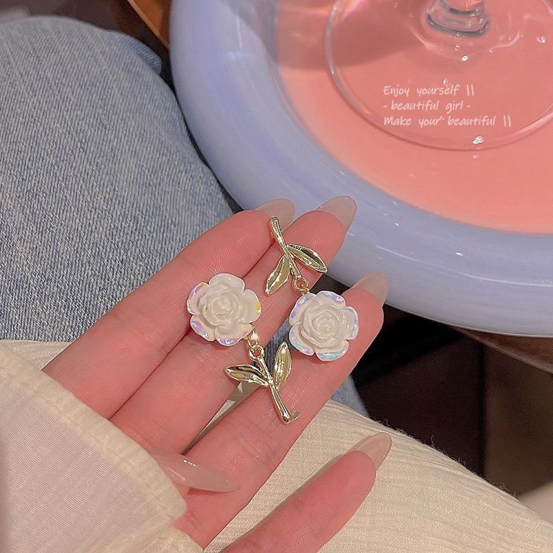 Korean earrings, cute jewellery , soft girl aesthetic, campus collection, mismatch earrings, floral earrings, flower earrings, white rose earrings, mismatch earrings,