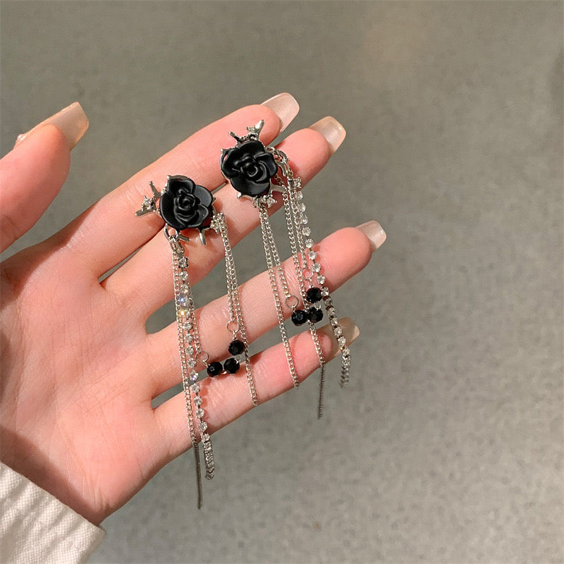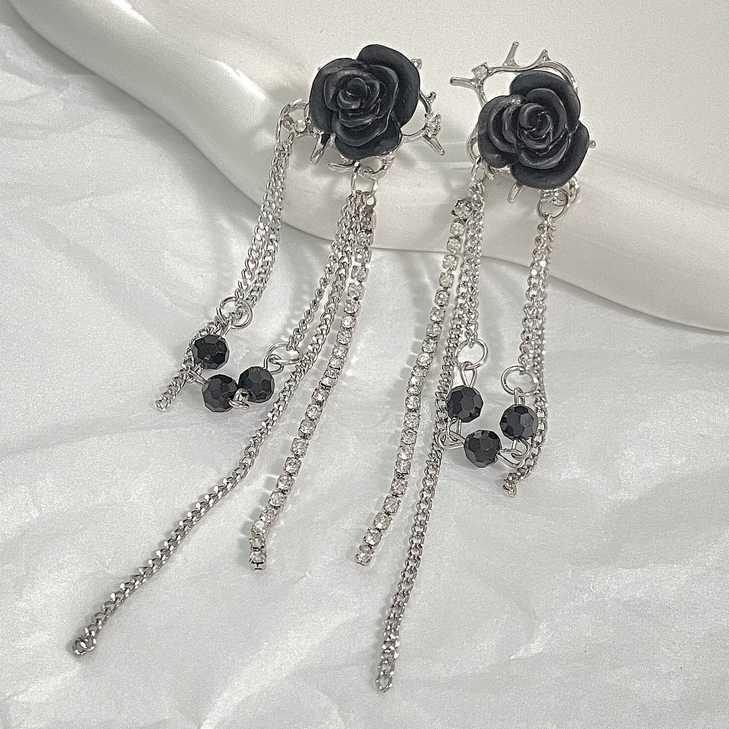 Rose earrings, black earrings, silver earrings, grunge earrings, Halloween earrings, Pinteresty accessories, gifts for girls