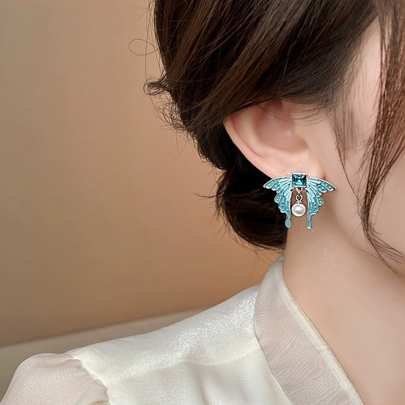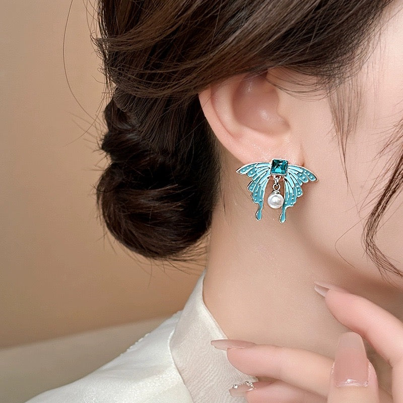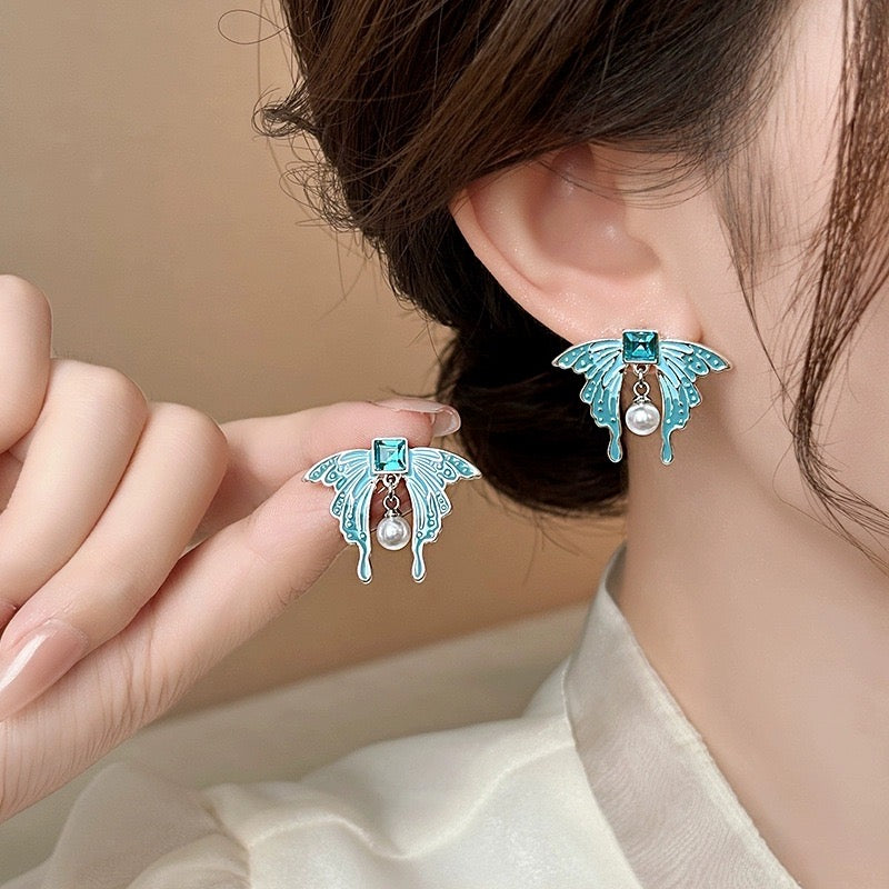 Blue earrings, pearl earrings, party earrings, butterfly earrings, party earrings, Pinteresty accessories, gifts for girls