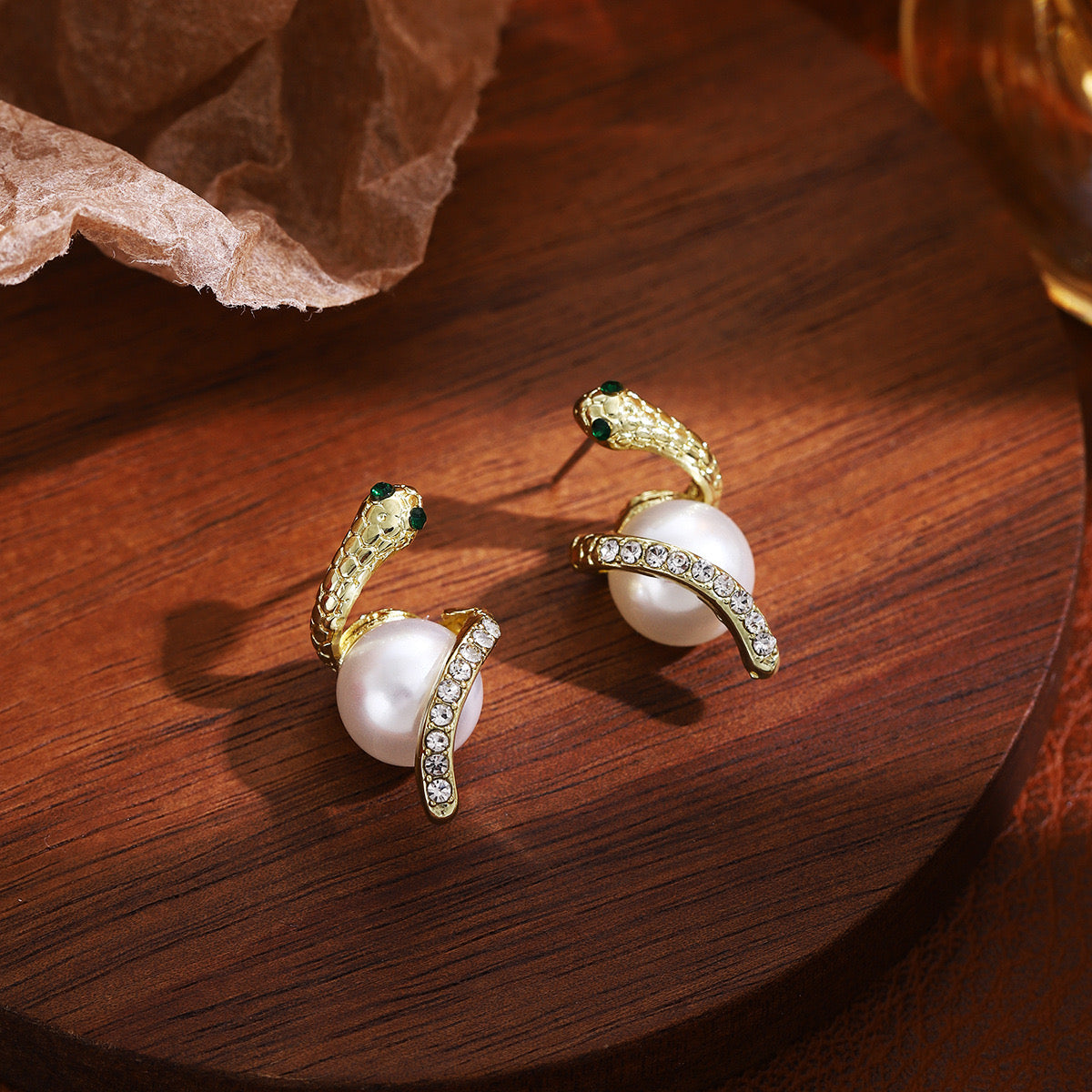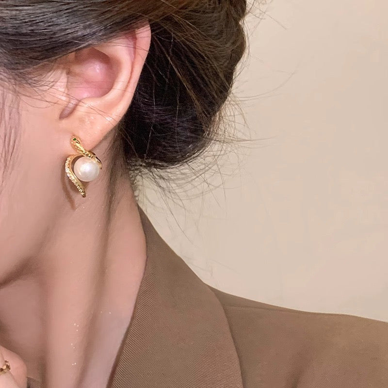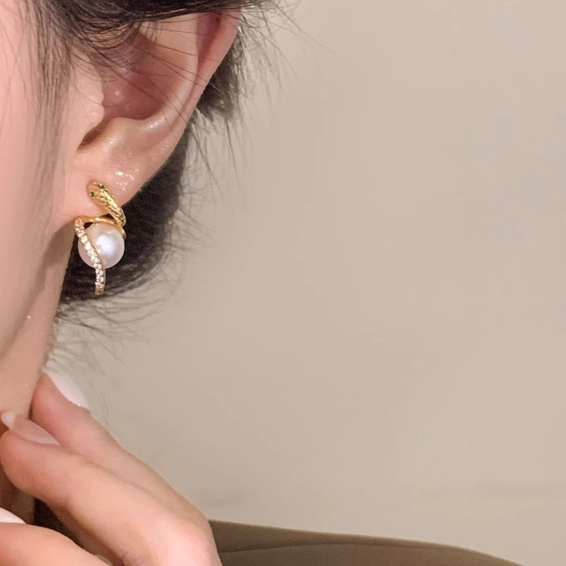 Pearl earrings, party earrings, snake earrings, snake jewellery, gold earrings, Pinterest inspired accessories, Pinteresty jewellery, gold jewellery