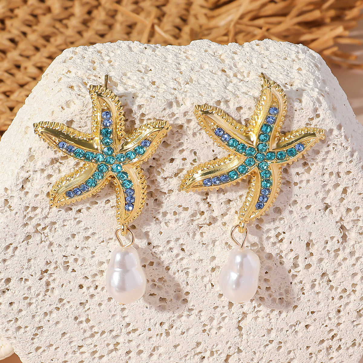 Blue earrings, star fish earrings, gold earrings, pearl earrings, beach earrings, pinteresty accessories, gifts for girls