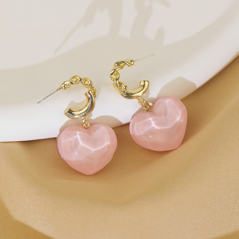 Heart earrings, pink earrings, gold earrings, Pinterest inspired accessories, Pinteresty jewellery, gold jewellery