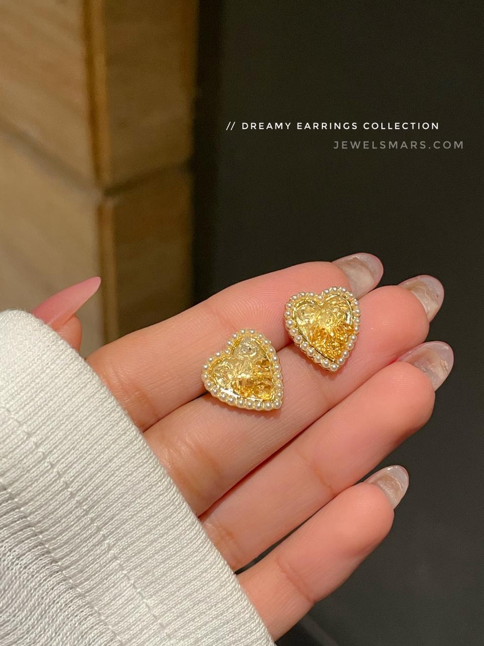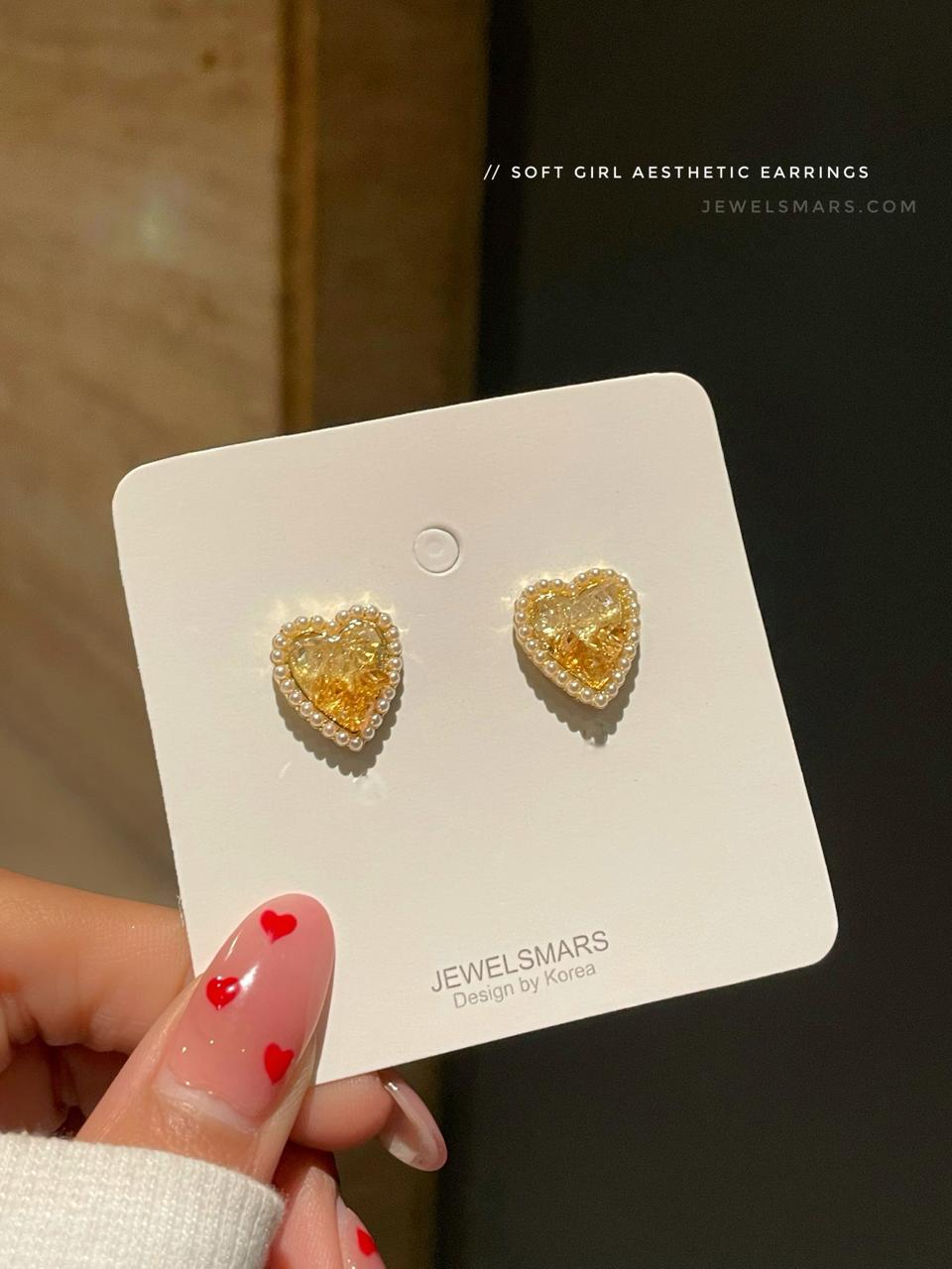 Korean earrings, heart earrings, party earrings, party jewellery, Pearl earrings, minimal earrings, minimal jewelery, dreamy earrings, soft girl aesthetic.