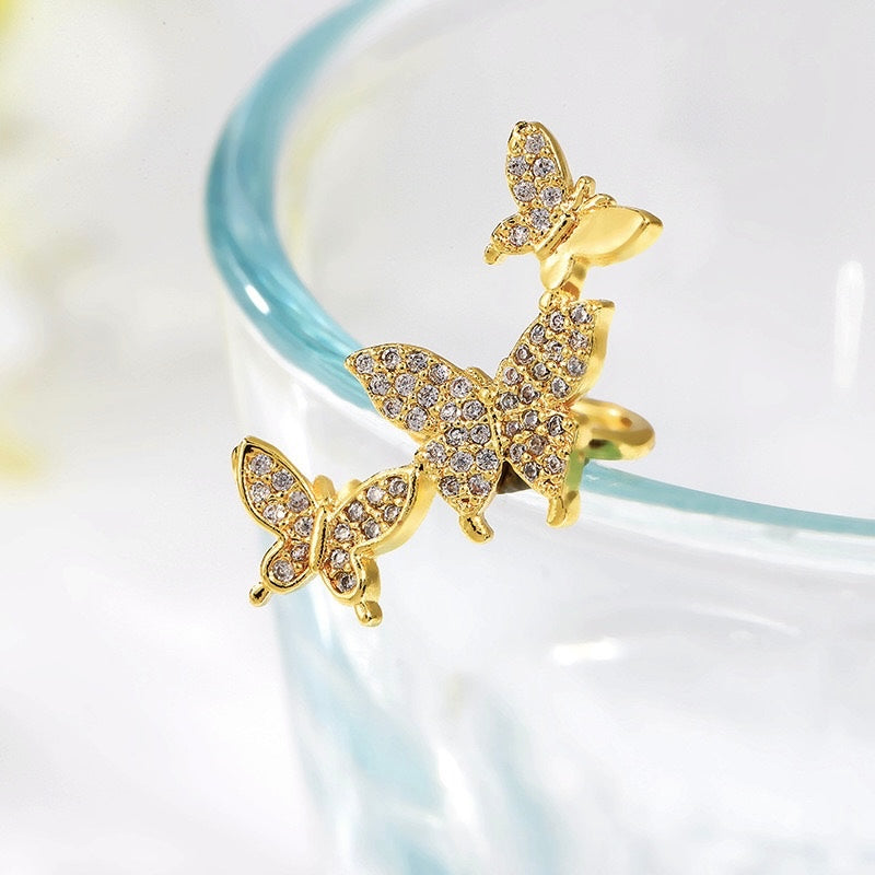 Gold ear-cuff, butterfly ear-cuff, rhinestone ear-cuff, stainless steel ear-cuff, gold jewellery, Pinterest inspired jewellery