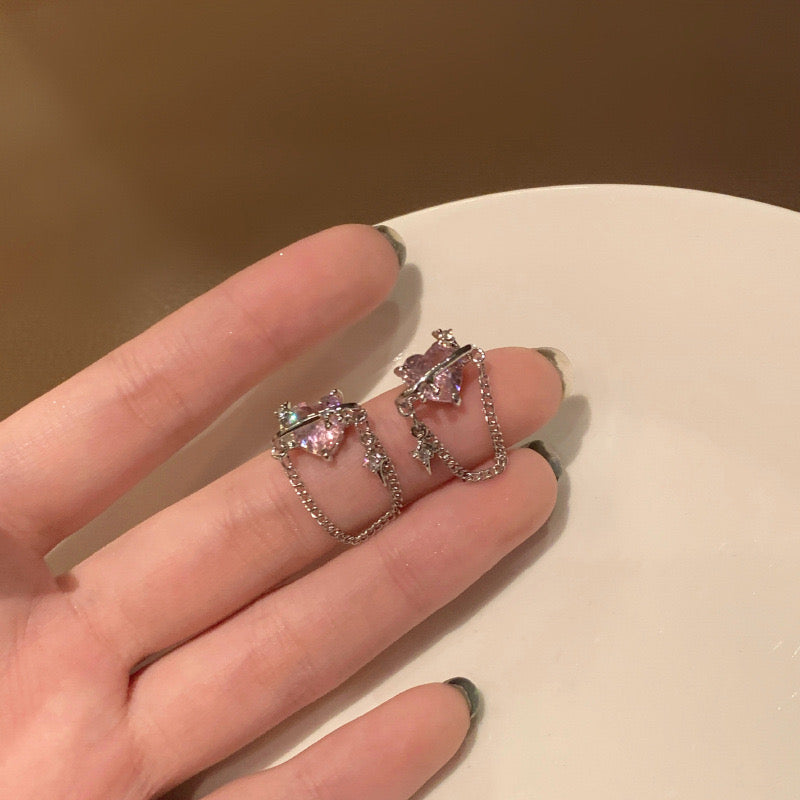 Pink earrings, heart earrings, dangling earrings, purple earrings, grunge earrings, grunge accessories, gifts for girls