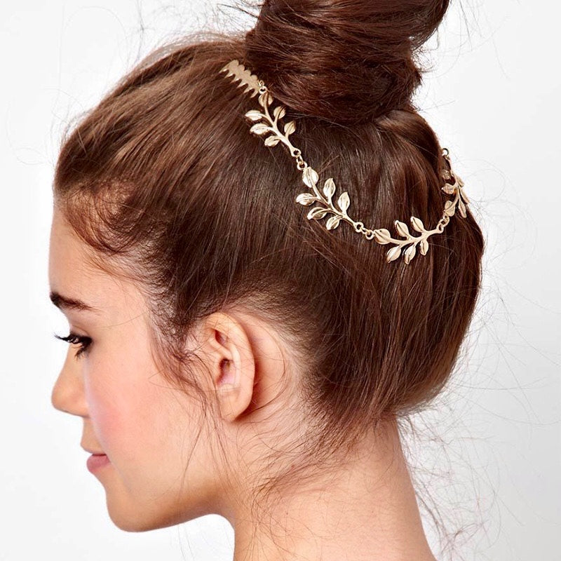 Hair chain, leaf hair accessories, gold hair accessories, bun chain, hair comb, wedding hair accessories, gifts for girls