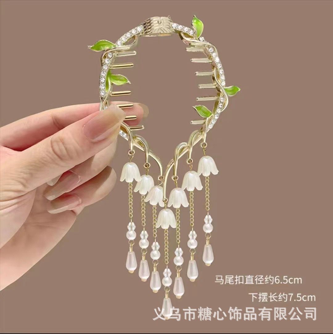 hair clips, flower hair accessories, hair bun accessories, claw clips, green Hair claws, cute hair claws, pearl hair claws, floral hair claws.