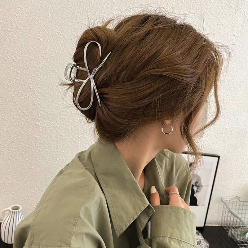 Bow hair clip, bow hair claw, gold hair claw, silver hair claw, pinteresty hair clip, gift for girls, soft girl accessories