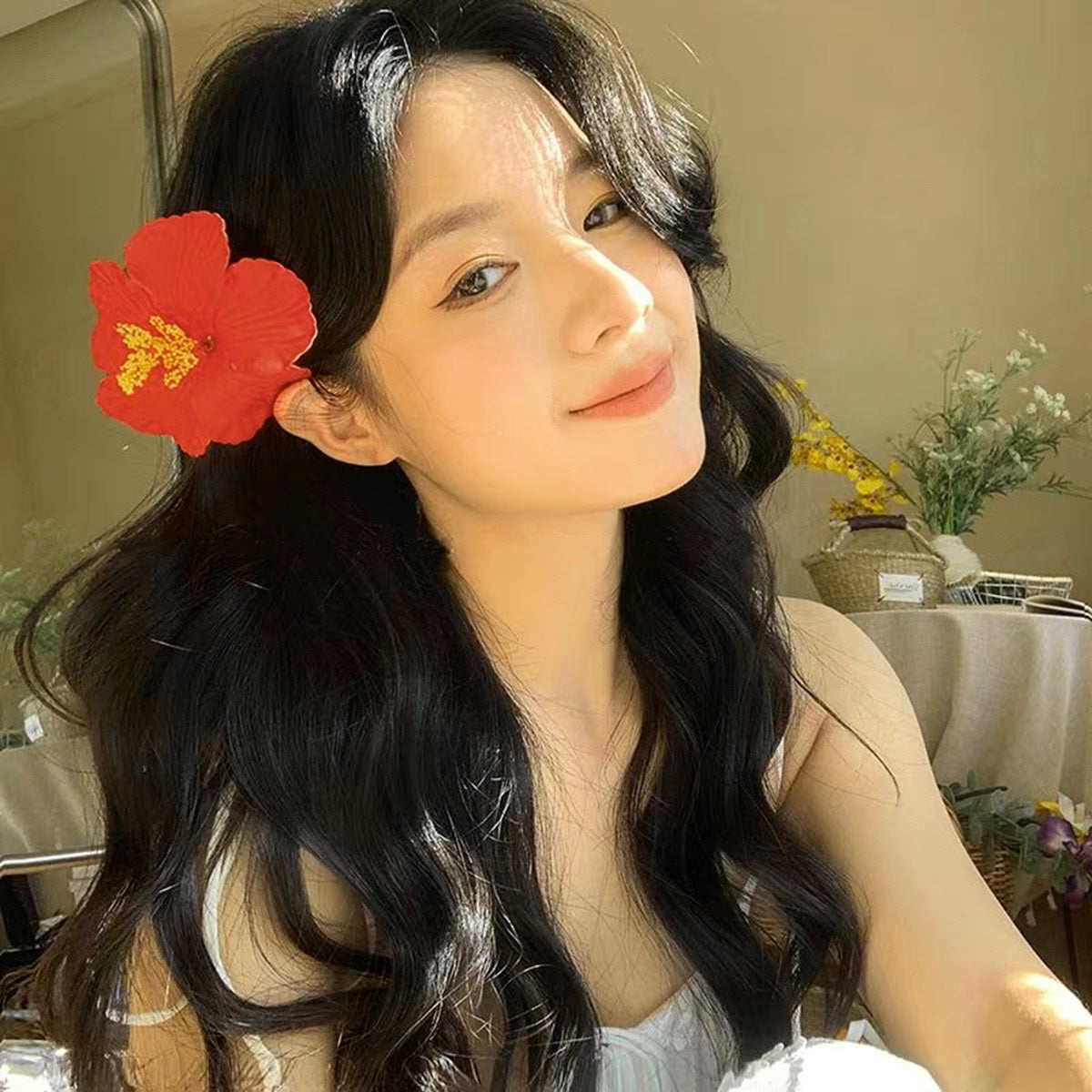 Flower hair accessories, orange hair clip, hibiscus hair clip, Pinteresty hair clip, girly hair accessories, gift for girls, soft girl accessories