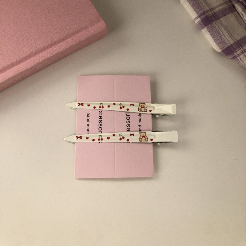 Teddy hair clip, white hair clip, bow hair clips, cherry hair clip, hair clip combo, cute hair accessories, gifts for girls