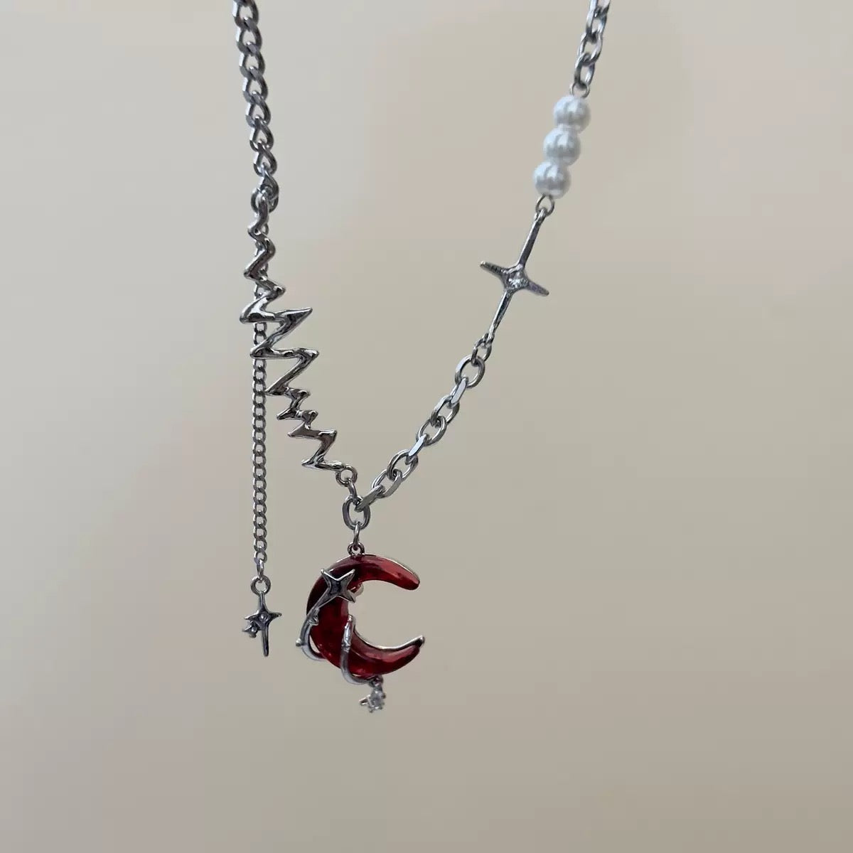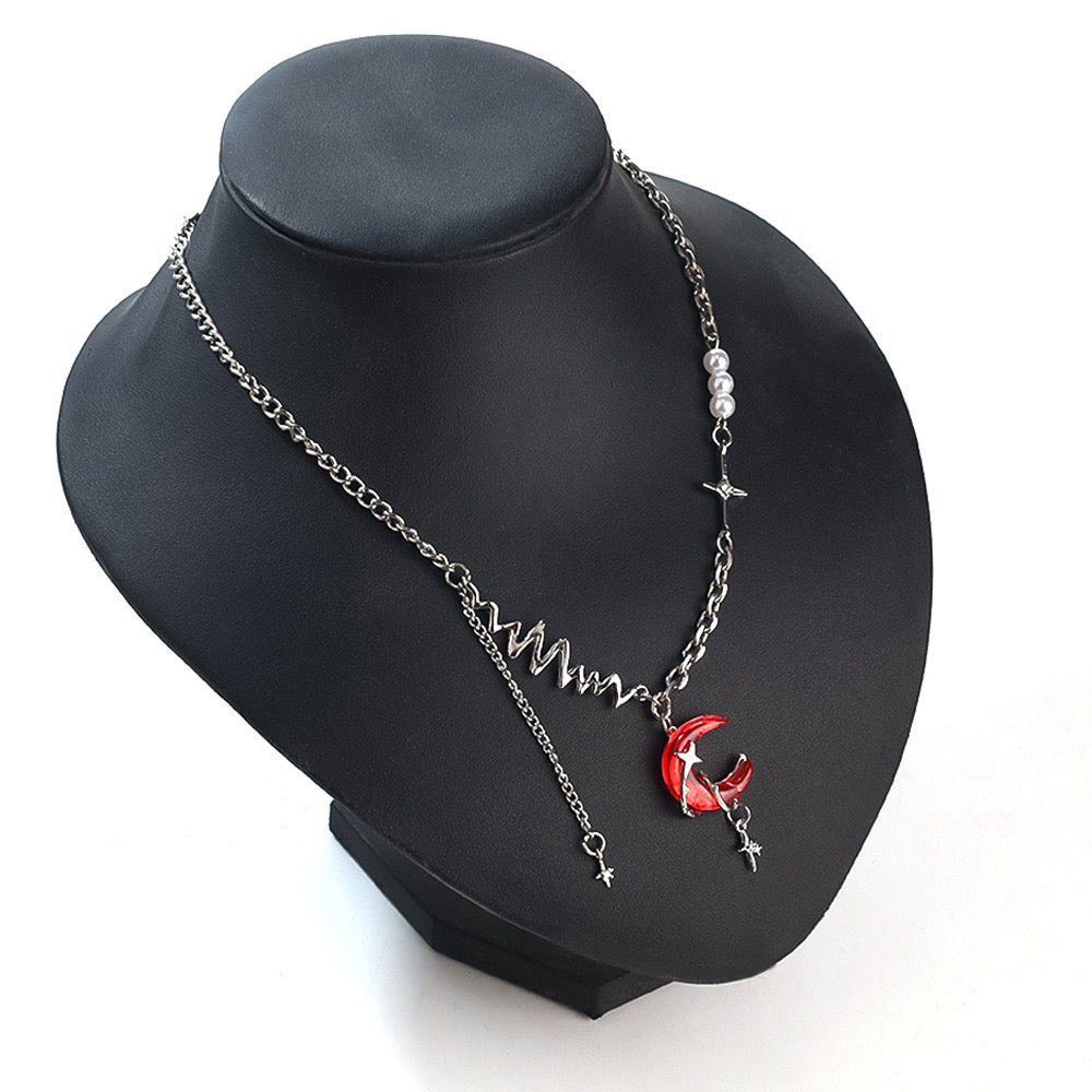 Moon necklace, red necklace, Silver necklace, grunge necklace, grunge accessories, gifts for girls, Halloween accessories, Halloween jewellery