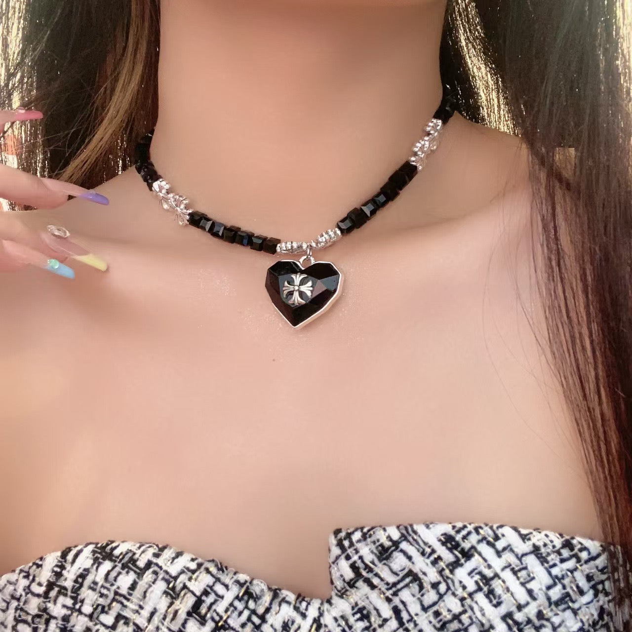 Black necklace, cross necklace, silver necklace, grunge necklace, grunge accessories, gifts for girls, Halloween accessories, Halloween jewellery
