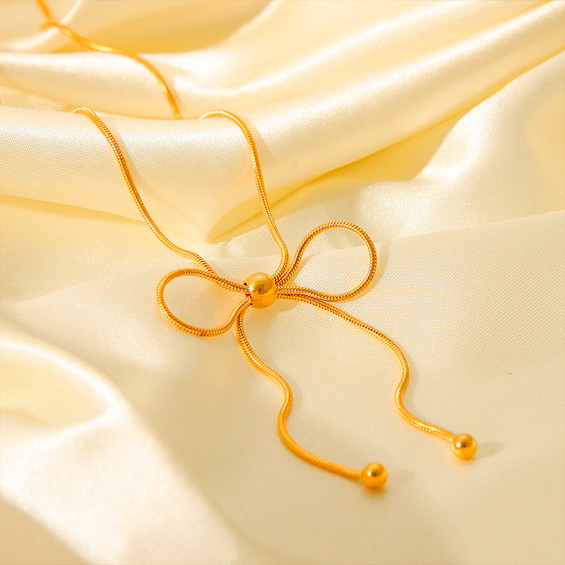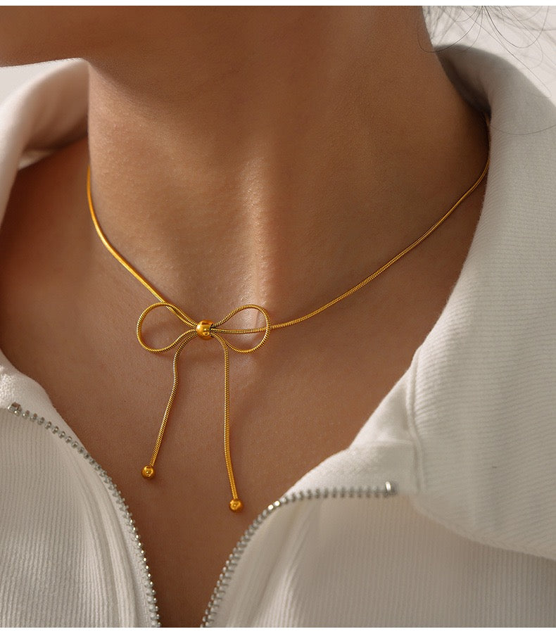 Anti tarnish necklaces , necklaces , gifts for her, golden necklace, anti tarnish jewellery, gold plated necklace, bow necklace, snake chain necklace, must have basic necklace , coquette girl necklace