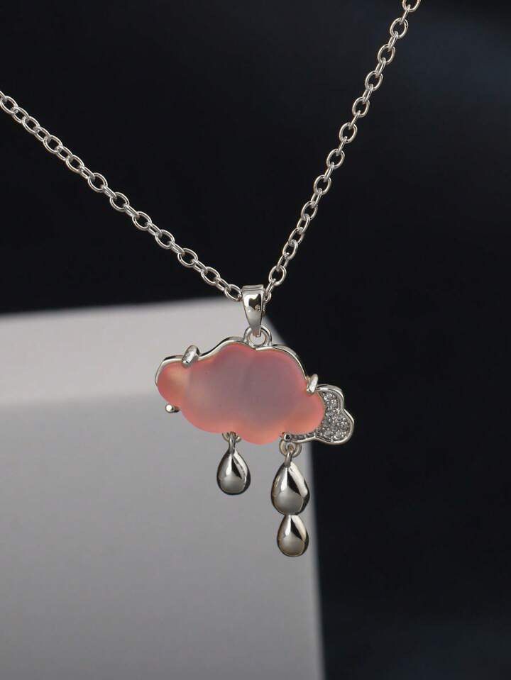 stainless steel necklace , pink cloud necklace, anti tarnish necklace, anti tarnish jewellery, pink necklace, pink jewelery.