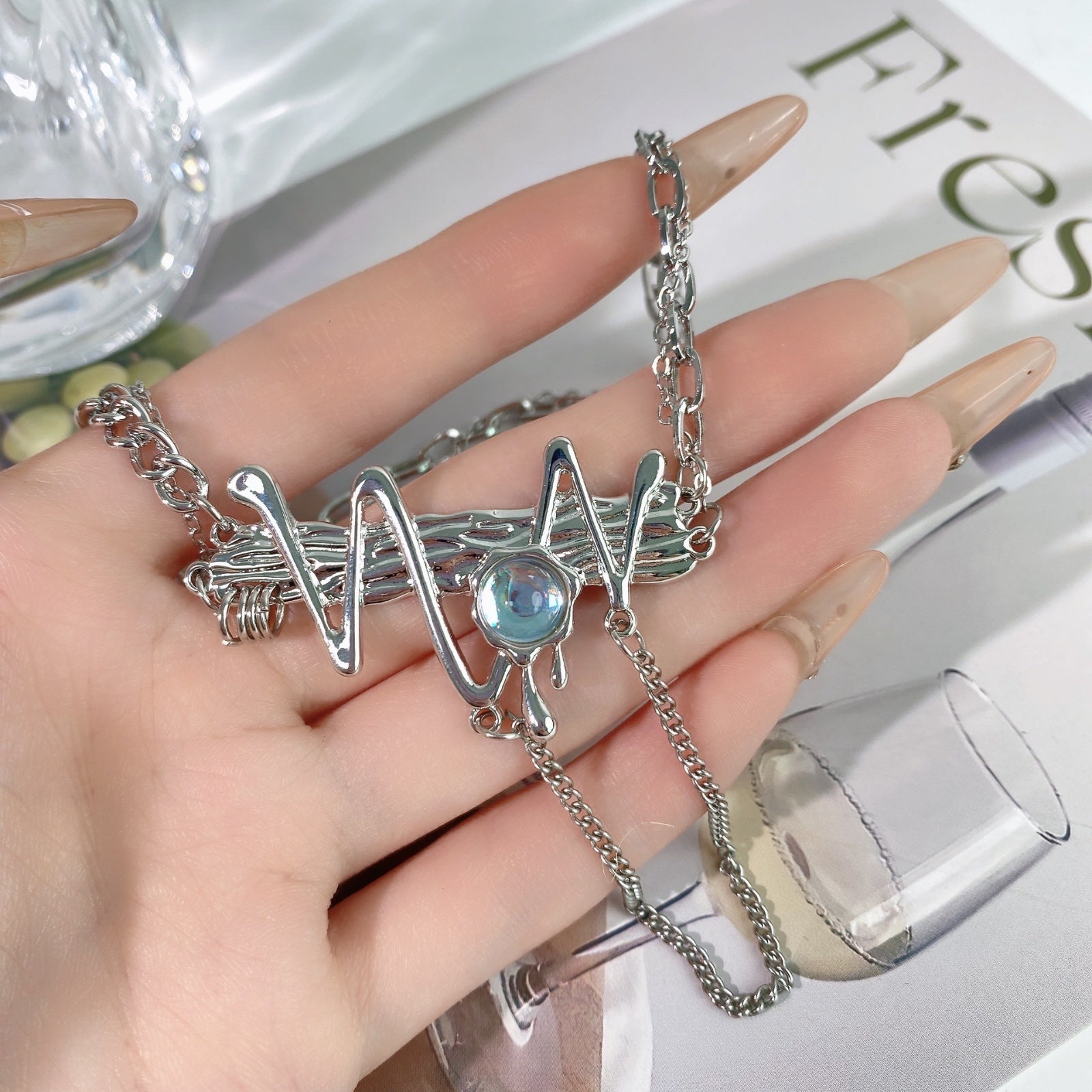 Blue necklace, chain necklace, silver necklace, grunge necklace, grunge accessories, gifts for girls, Halloween accessories, Halloween jewellery