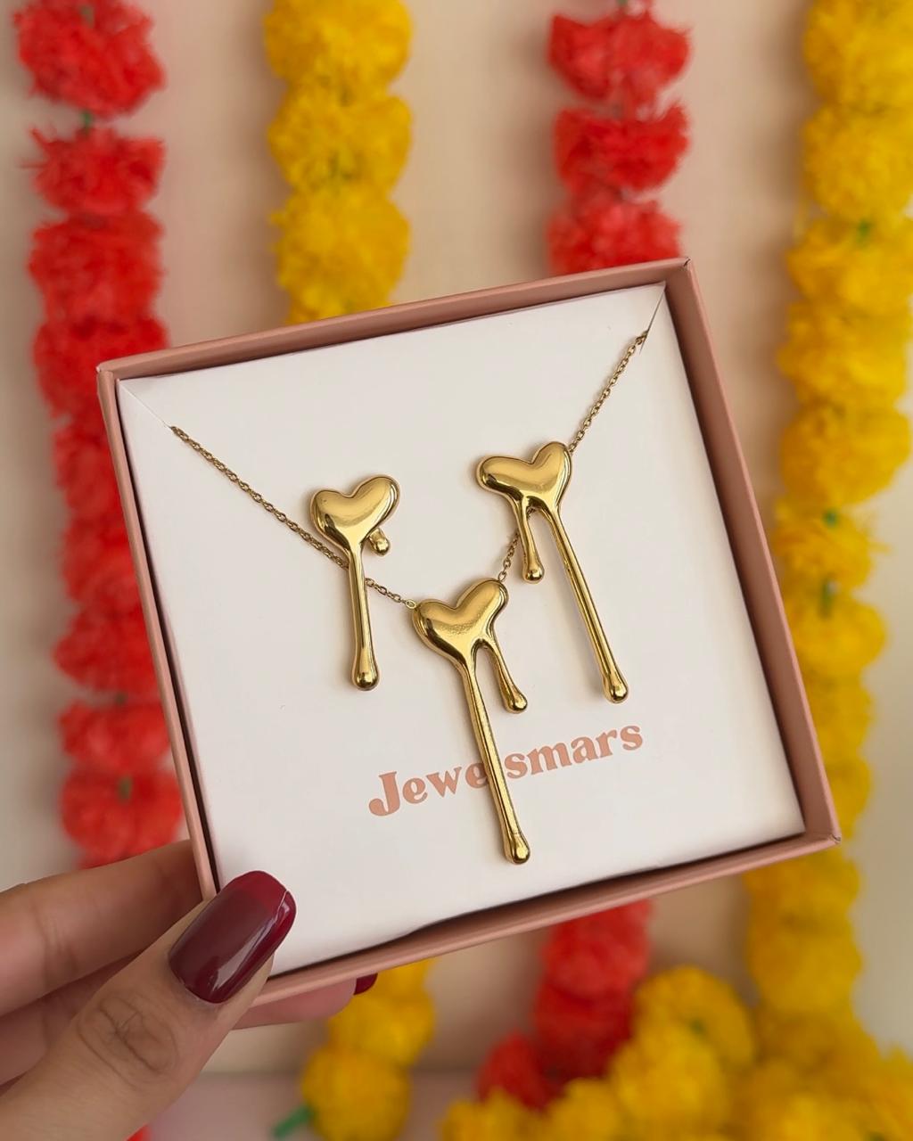 [ heart necklace , heart jewellery , golden jewellery, anti tarnish jewellery, gift hampers for her, minimal necklace, diwali gift ideas, stainless steel jewellery, affordable gift idea ]